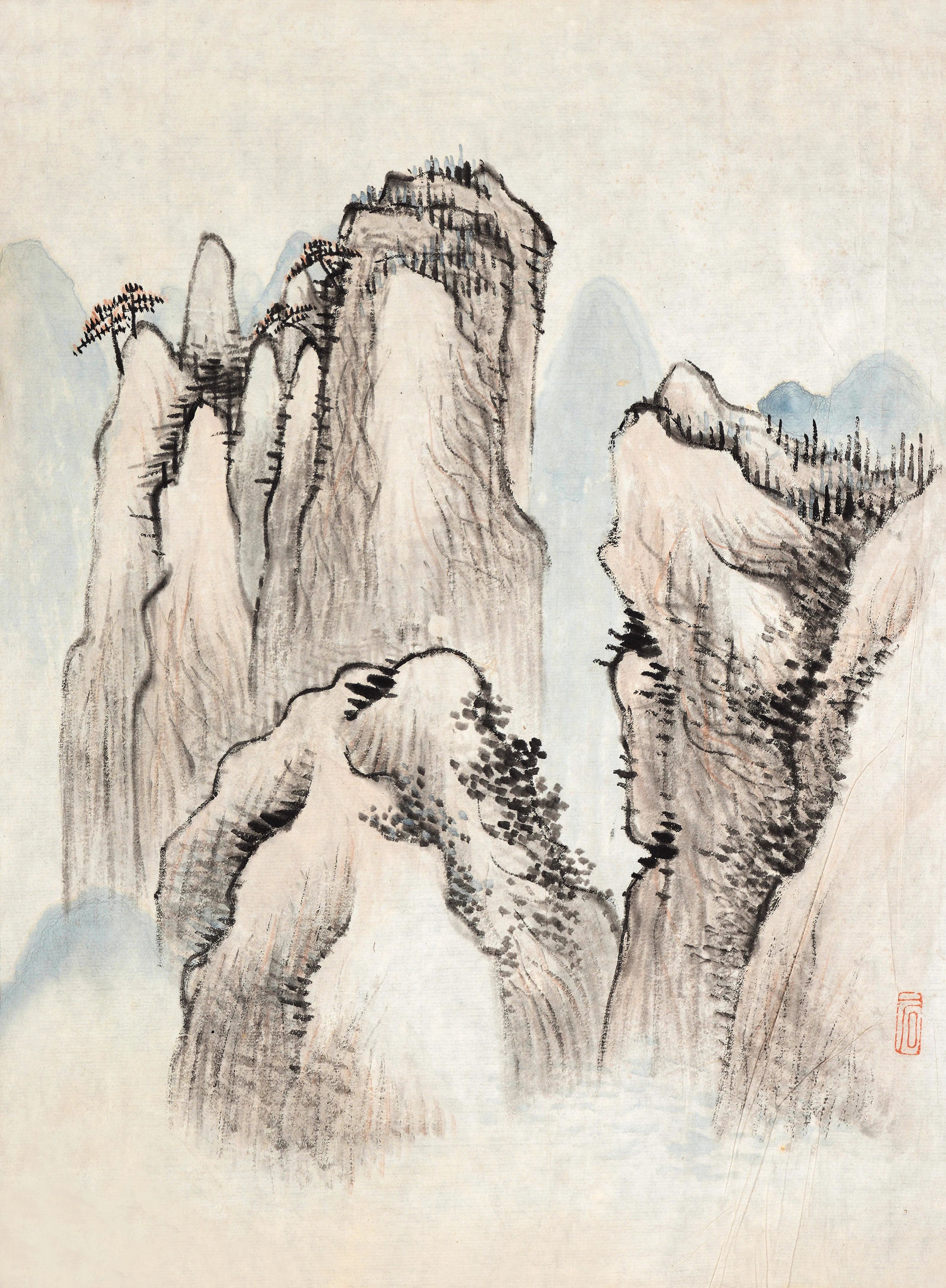 黄宾虹(1865—1955),初名懋质,后改名质,字朴存,号宾虹,别署予向、虹叟、黄山山中人。近现代著名画家、学者,山水画一代宗师。原籍安徽省徽州(今黄山市)歙县,生于浙江金华,成长于老家歙县潭渡村。早年激于时事,参与同盟会、南社、国学保存会等,后潜心学术,深研画史、画理。历任新华艺专、北平艺专、中央美院华东分院教授、全国政协委员。学养渊博,著述宏富,诗书画印及鉴赏皆精,为中国近现代艺术史上的一代巨匠。