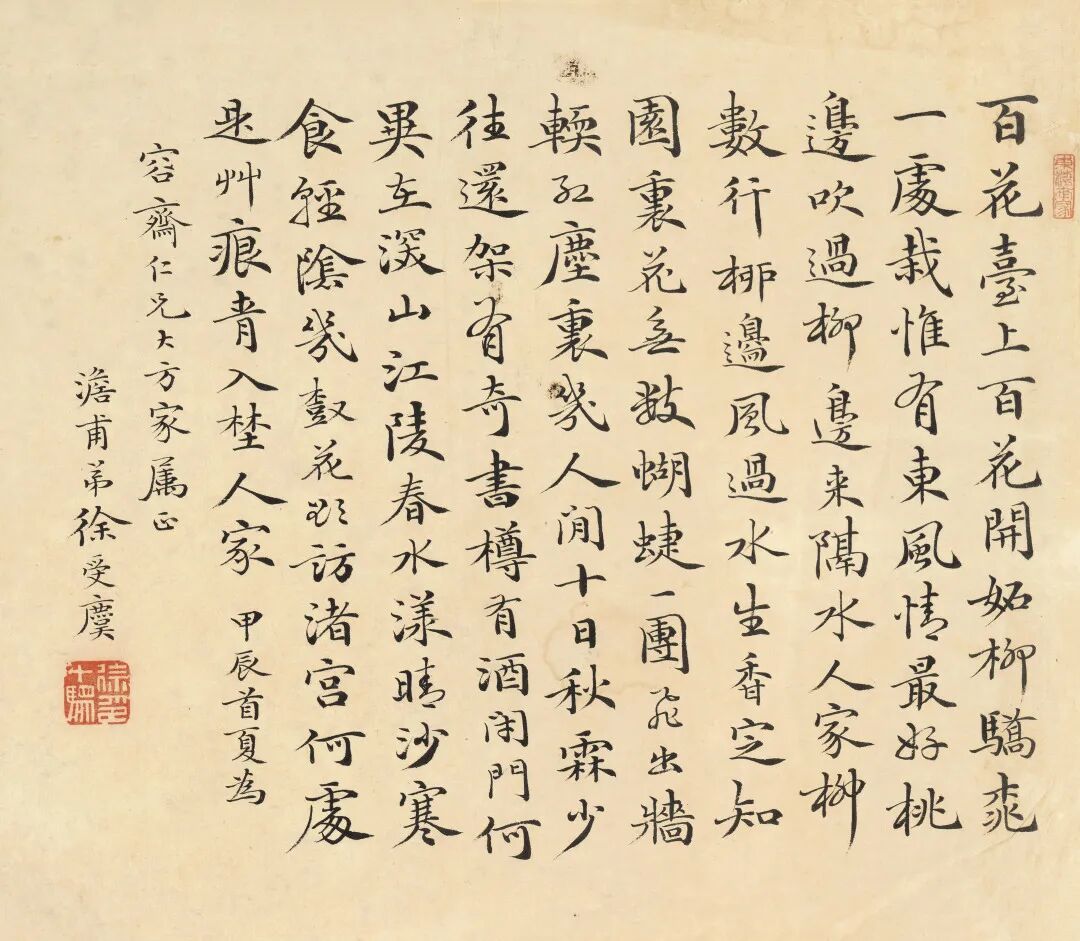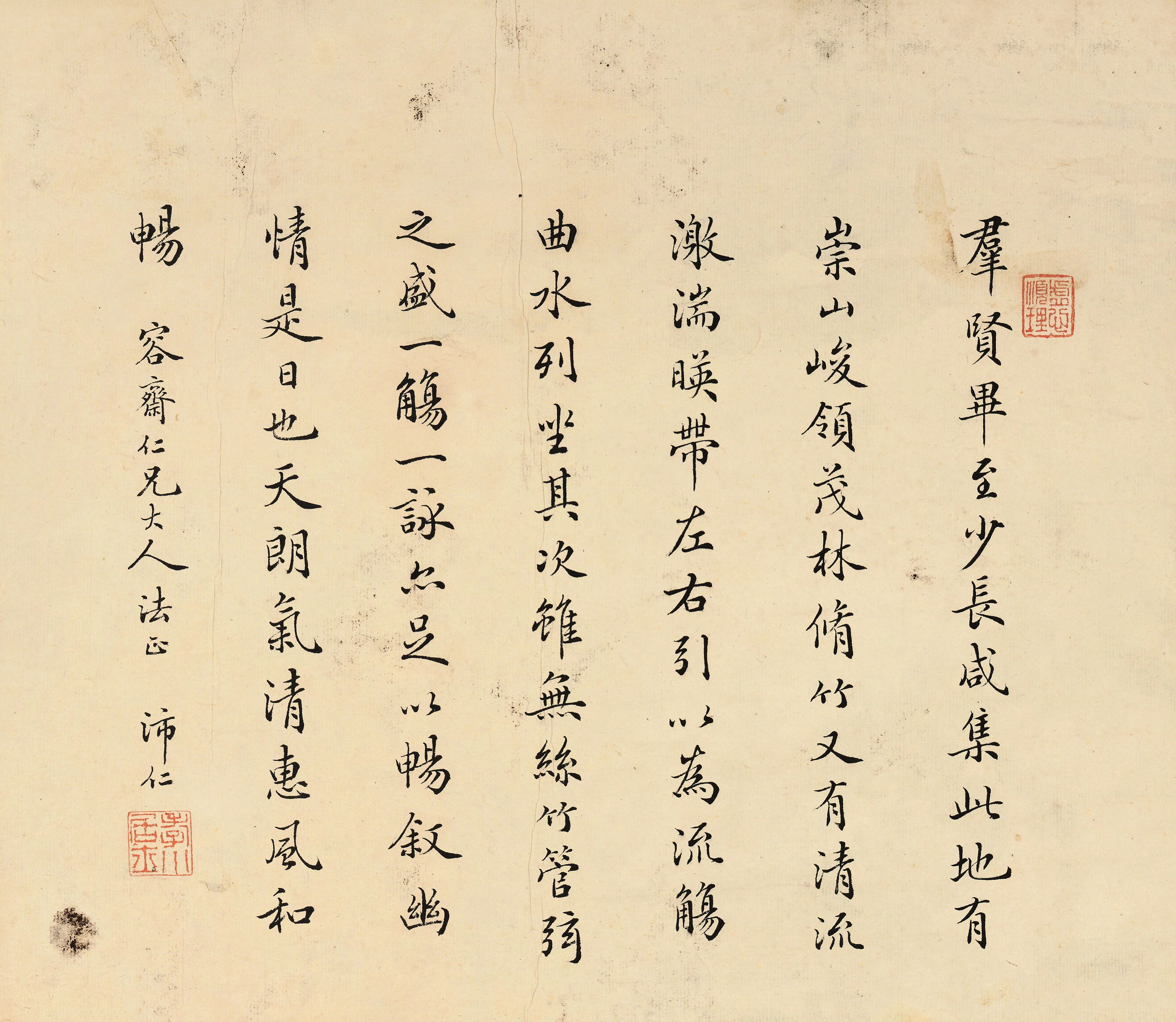款识:容斋仁兄大方家属正,澹甫弟徐受麌。