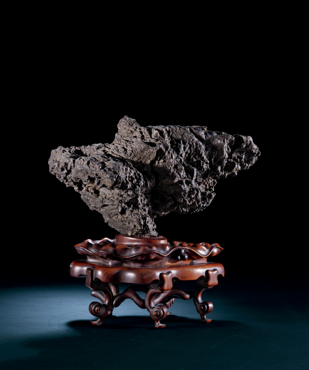 此太湖石研山奇崛,手感细腻,造型硕大,外观沈实,未经人工雕琢,身姿威武,体态遒劲,宛转险怪,如鸿鹄展翅,如峰顶绝壁,给人一种「壁立千仞、无欲则刚」的壮美,又有引人深思「点滴成石」之哲理。其通灵剔透,势态险怪,蕴含大自然鬼斧神工的无穷奥妙,适宜案头摆放。太湖石原产于苏州洞庭山太湖水中,为经典观赏石。明代文震亨在《长物志》中写道:「太湖石在水中者为贵,岁久被波涛冲击,皆成空石,面面玲珑。」因其透出的无穷意蕴和境界为古人倾倒,故深受古代帝王和文人雅士之爱。此件拍品处于保税状态下,具体信息请联系北京保利拍卖中国古董珍玩部工作人员。