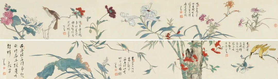 引首:溥心畬先生仿宋花鸟卷。岁次乙未孟冬春阳题于天津美术学院。钤印:霍春阳