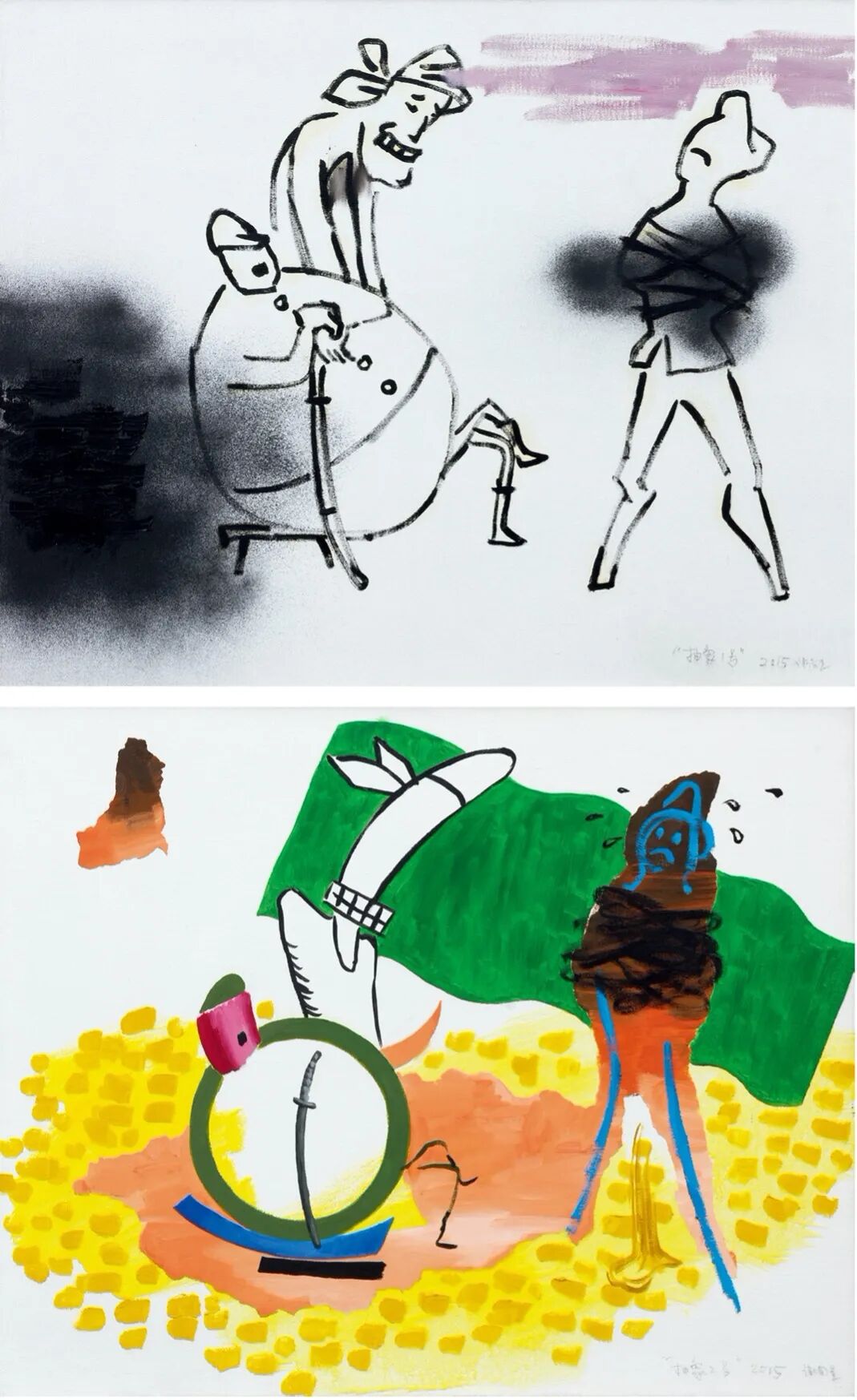 签名:“抽象1号” 2015 谢南星(左联);“抽象2号” 2015 谢南星(右联)