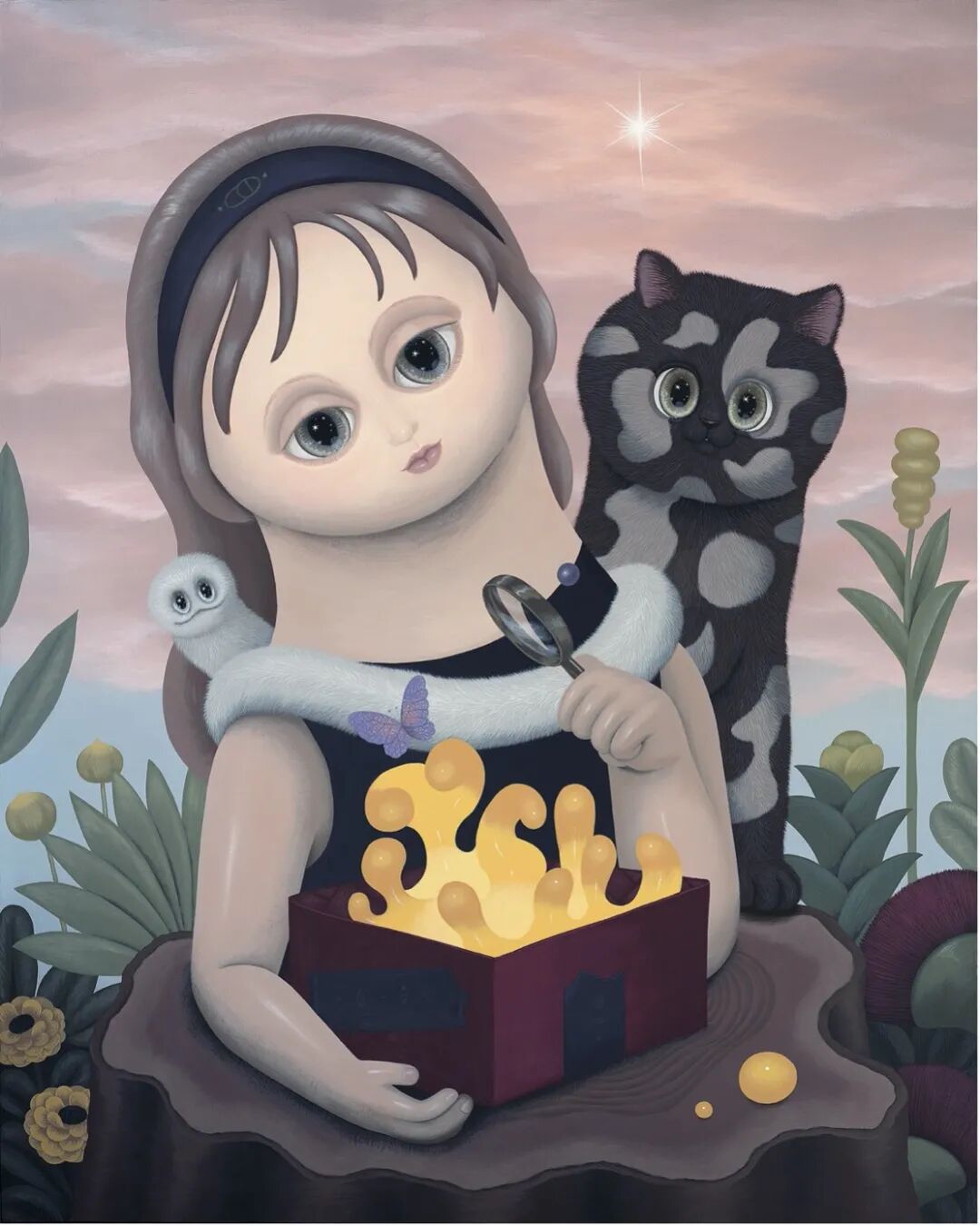 索菲冯海勒曼的画作让人联想到寓言,传说和传统故事的外观,这些寓意深深地融入了她的潜意识而不是现有图像的内容。她用稀释的颜料混合出独有的颜色,再添加粉末涂料,粗刷洗法给照片增添了失重感,浪漫而柔和的水洗画布被用来暗示复杂的叙事线索。在主题和风格方面,冯海勒曼将想象力与现实进行比照,将从古典神话和文学中提炼的意象和时事相呼应,创造出广阔的想象空间。