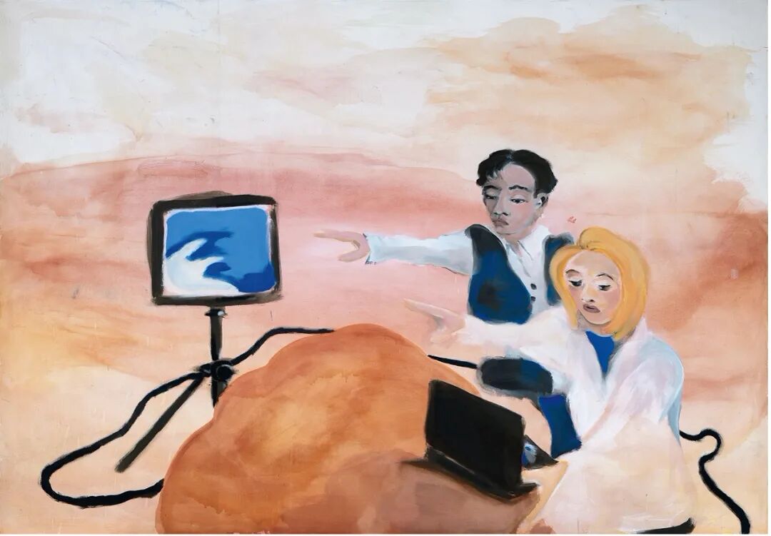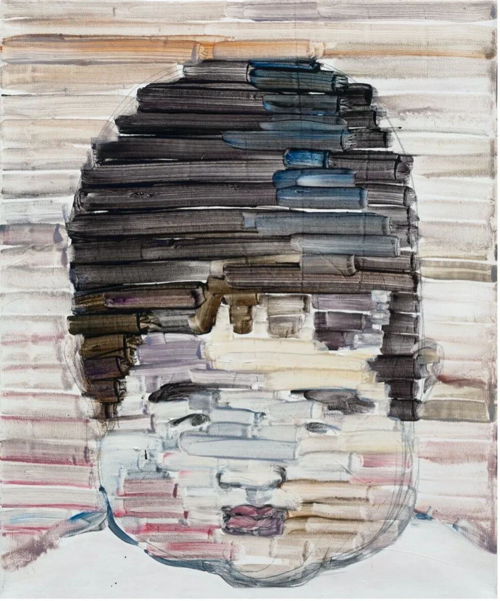 日本当代艺术家江上越通过大胆而细腻的笔触、游走在具象和抽象之间的风格,创造了一种全新的审美体验。本次亮相的《语言交流游戏》曾参展“误听x真相”江上越个展,也是艺术家阶段性生活的实录。江上越的绘画好像是夸张了对象的特征和表情,其实是把一张画面捕捉不尽的表情综合地画进去。对应于“误听”她是把“误看”作为褶裥编织入内,刻画进作品。江上越的创作,针对于”交流” 的概念和意义,通过语言误听的游戏化方式,对应了时代的变化,文明的冲突,验证了语言交流所产生的障碍,甚至危机的现象,显示出一种多媒介的表达方式和叙事话语。