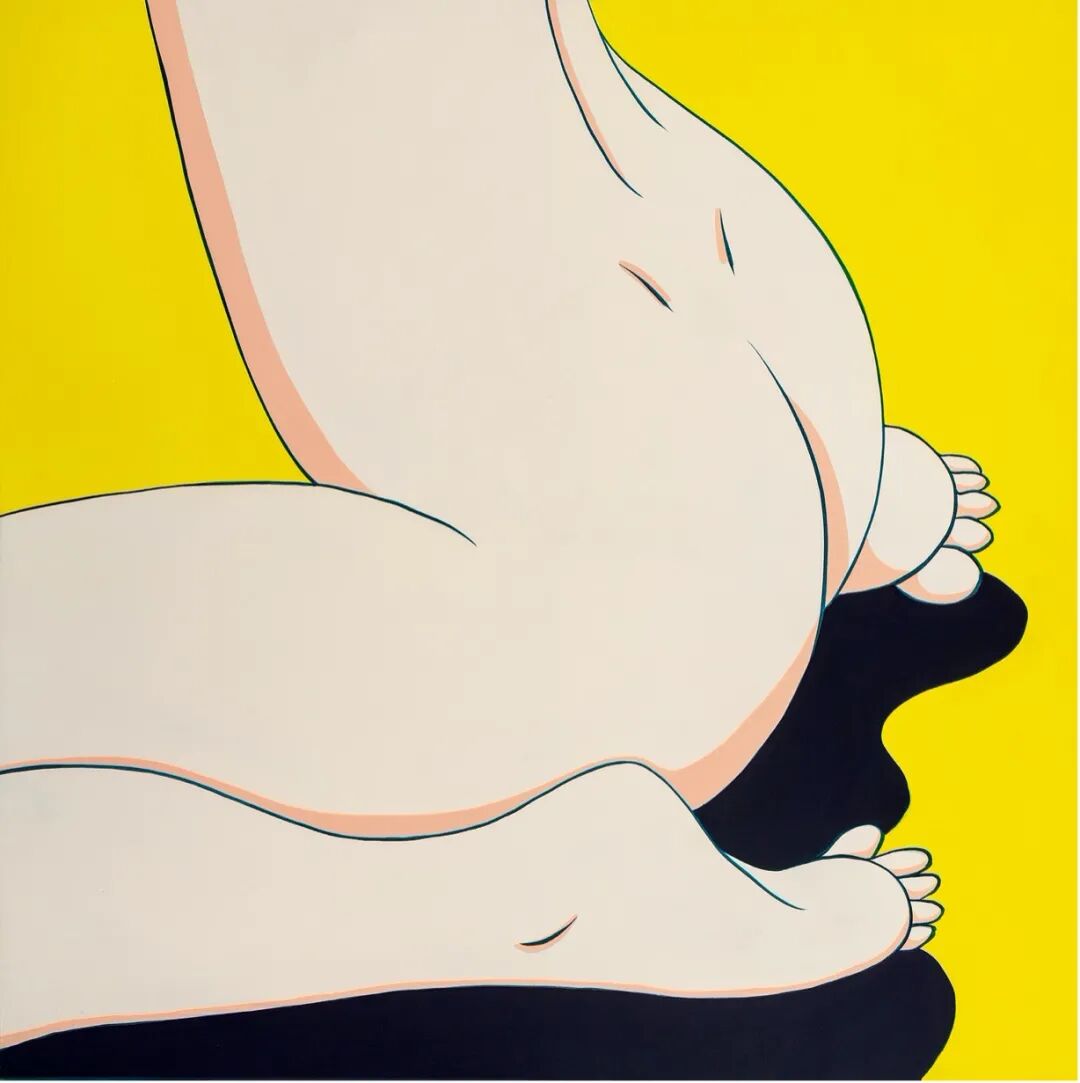 维纳斯作为西方神话中代表“美”的女神形象是西方绘画史中经常出现的描绘对象,她的女性裸体形象也被作为赞颂人体曲线之美的象征。在天野健的作品《Venus Buttock》中,他呈现了日本超扁平化艺术风格的维纳斯形象,以勾线填色的方式将人物形象“降维”,成功糅合了古典与潮流艺术的元素。天野健试图塑造东西方元素的反差,让西方经典艺术与观众能清晰辨识出的这种日本文化符号的艺术创作风格相碰撞。