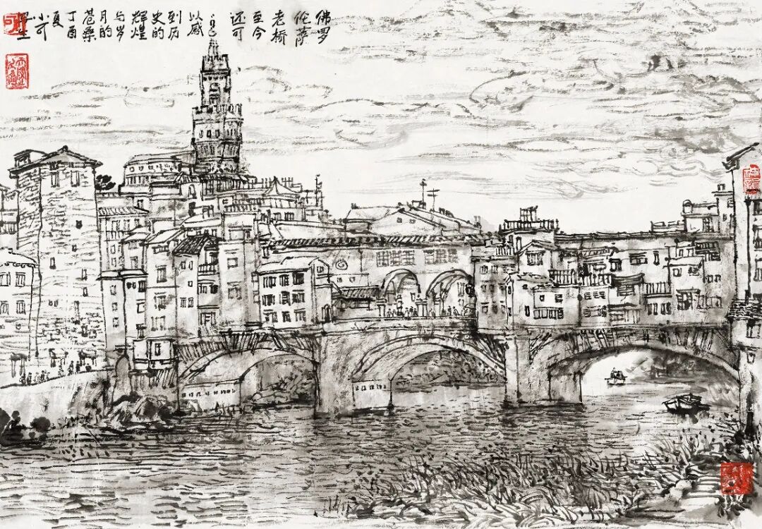 李小可《意大利写生——佛罗伦萨老桥》 54x78cm 2017年