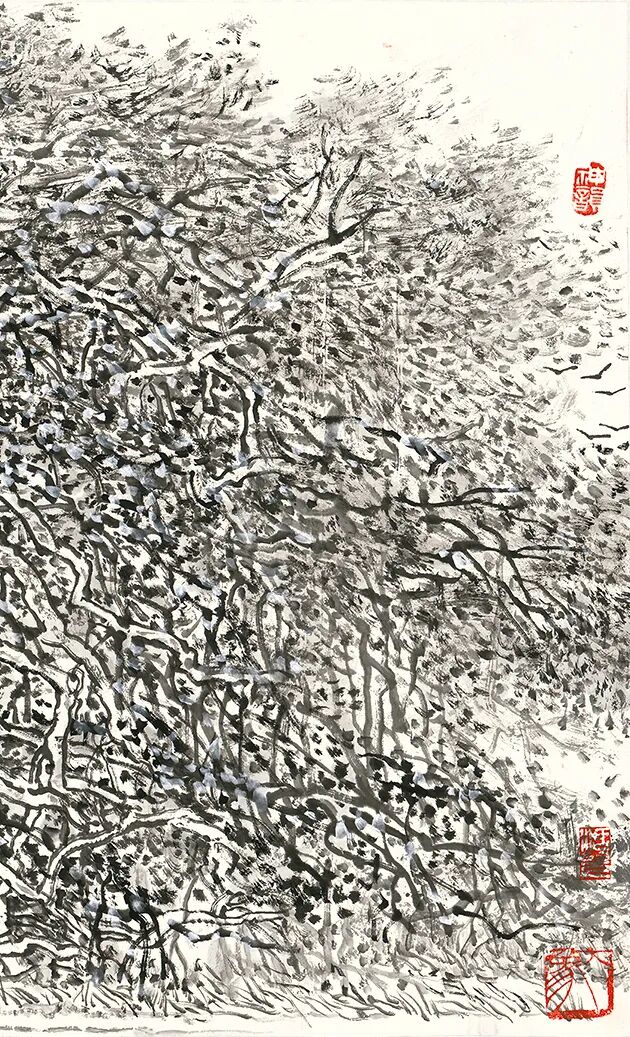 从神秘苍茫的雪域高原到绮丽雄浑的现代桥梁建筑;从思考写生的布局构图到还原写生对象的结构质感;李小可将中国画的传统精髓与现代人的视觉体验不断融合,将自我真实的情感与本真坚守融入到艺术创作。李小可在传承李可染艺术精神的同时,不断拓展“李家山水”发展的新方向与新可能。