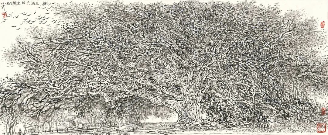 “写生”是艺术家将大自然赋予的感动与传统程式化表现形式及个人审美选择连接起来的重要环节,是对自然、传统的再发现、再认识,是山水画基本功练习的重要一环,最具活力与生机。写生是艺术家的心灵直面瞬息万变的客观世界,能让传统与当代文化以及个人的表现经验发生碰撞,激发无限的创作灵感,推动审美领域的新发现。此次展览中,将重点展出李小可在海外的对景创作《意大利写生——佛罗伦萨老桥》、《日本写生——富士山远眺》、《美国写生——旧金山金门大桥》、《美国写生——树》等。不同于李小可以往的“水墨家园”系列,这些对景创作生动的展现出艺术家在面对写生对象时深厚的笔墨功底与技巧,以及不断变幻的自然光影赋予他的创作灵感。
