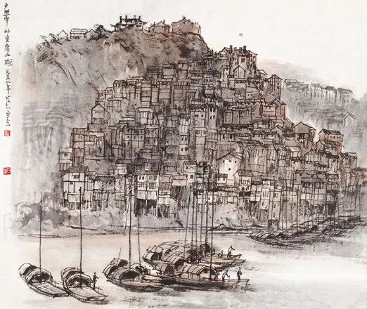 李可染《夕照中的重庆山城》45x53cm 1956年