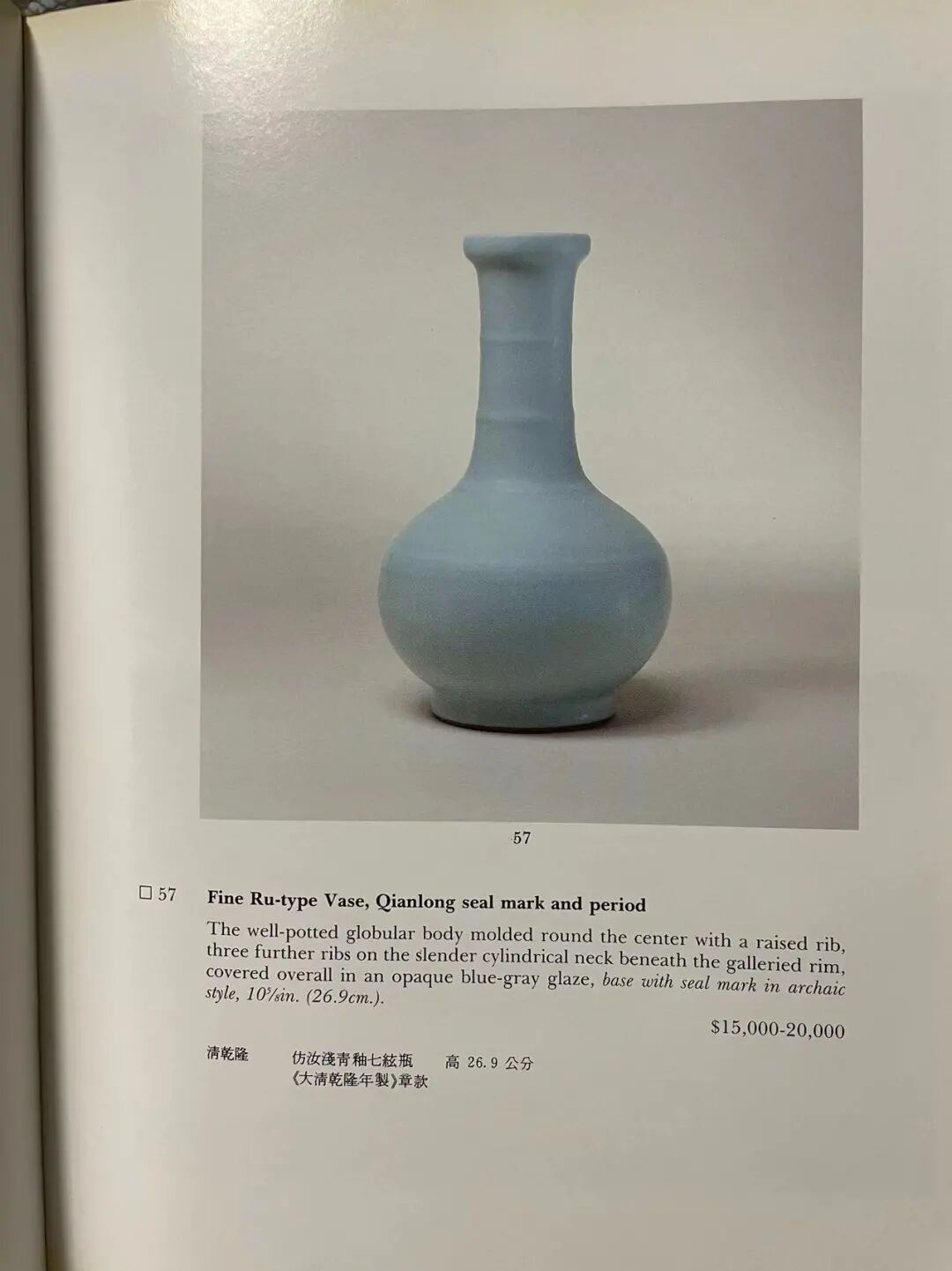 4.2009年香港佳士得秋拍,lot1903清乾隆窑变釉盘口弦纹瓶,成交价HKD5,060,000