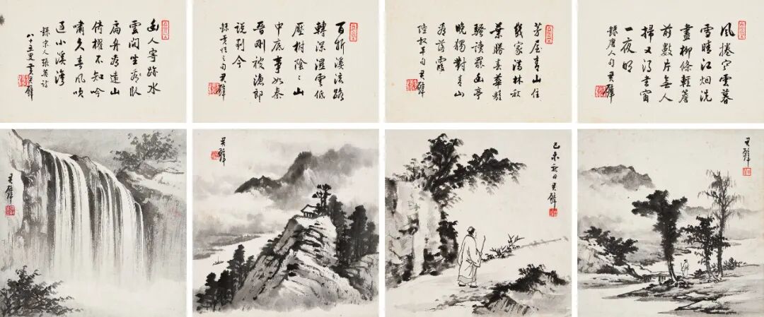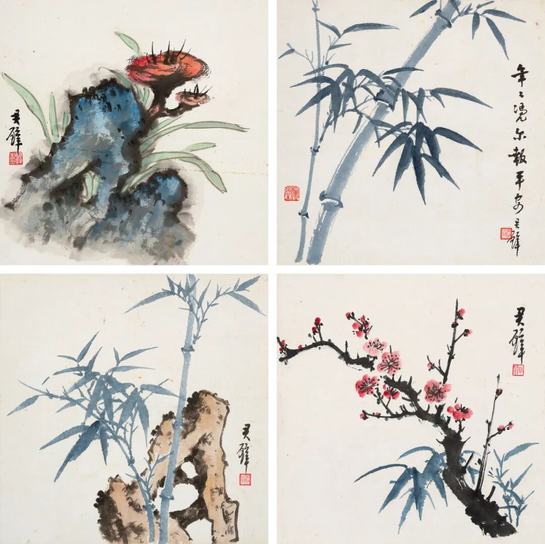书:19.5 cm×30 cm×4画:30 cm×30 cm×4【说明】lot1521-1524为舜华、慧根伉俪旧藏。陈惠根,又名陈安民,黄君璧弟子,斋号宣云堂。工山水,好收藏, 与赵少昂、杨善深等岭南诸名家交往甚密;又攻牙科,以牙科为业。