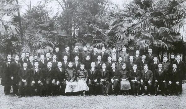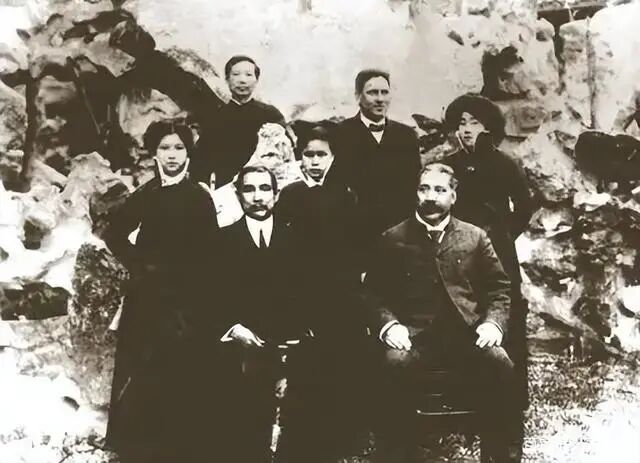 1911年12月,孙中山(前排右七)与章太炎、黄兴等人在爱俪园合影