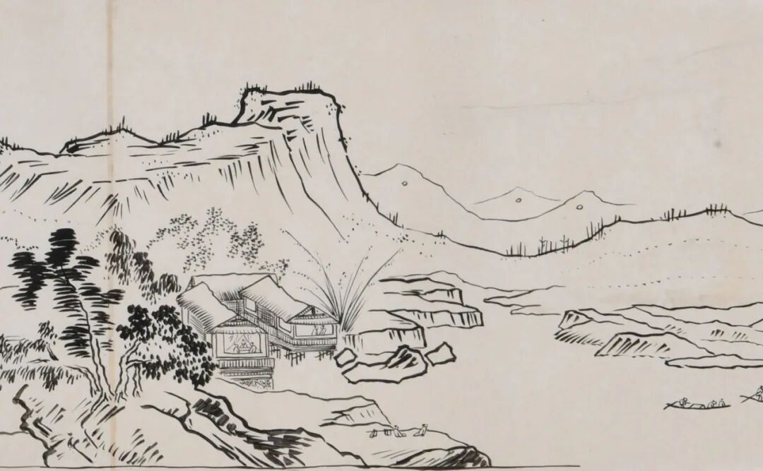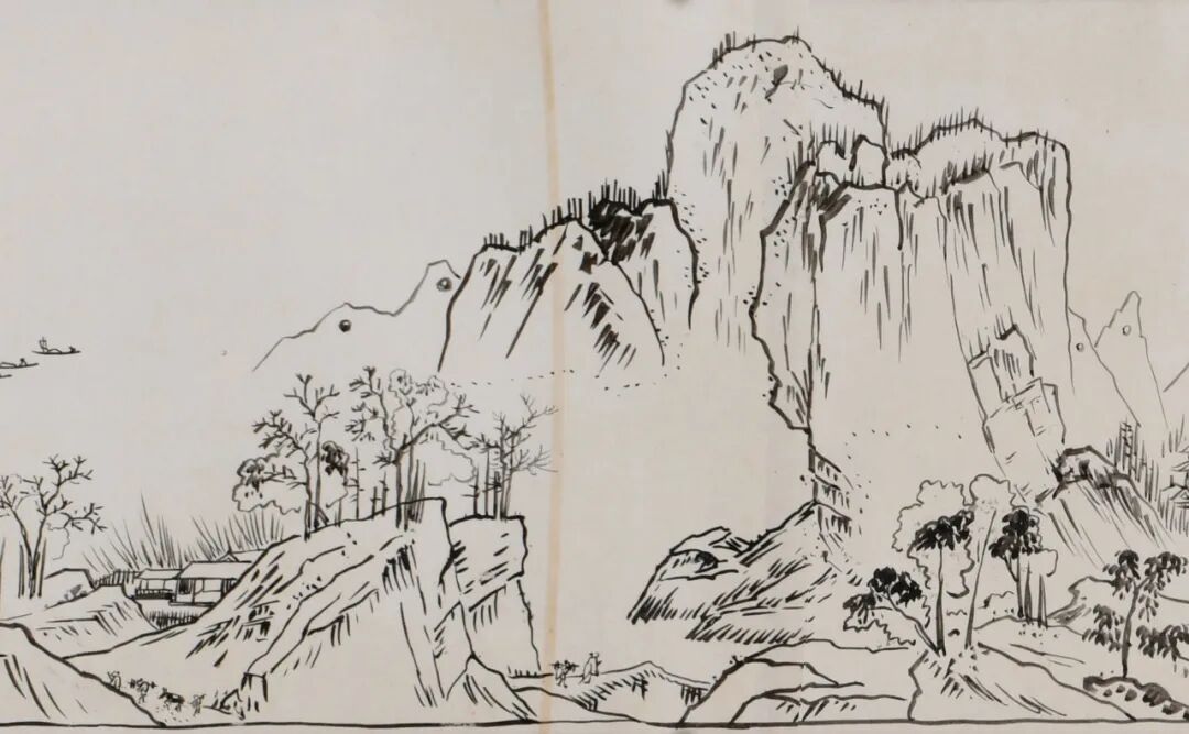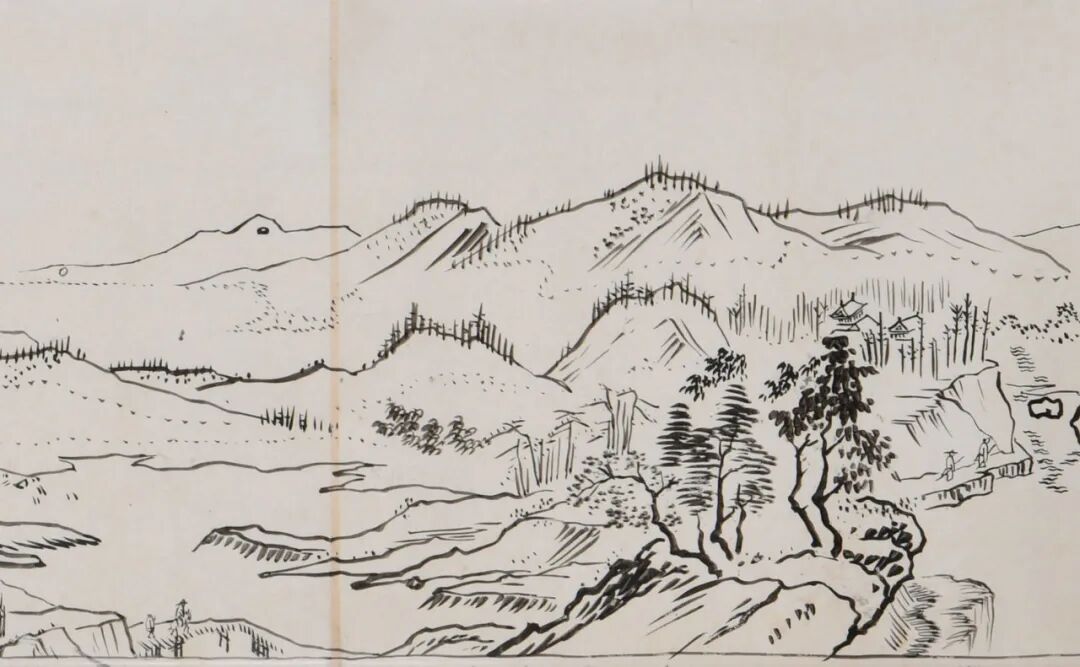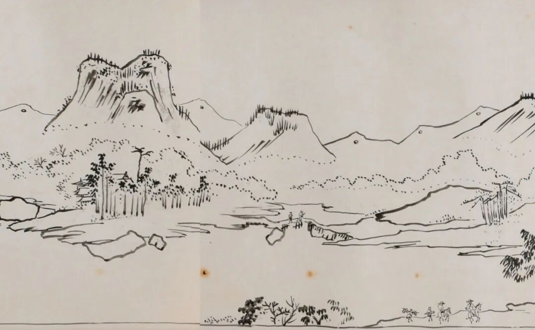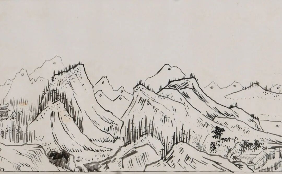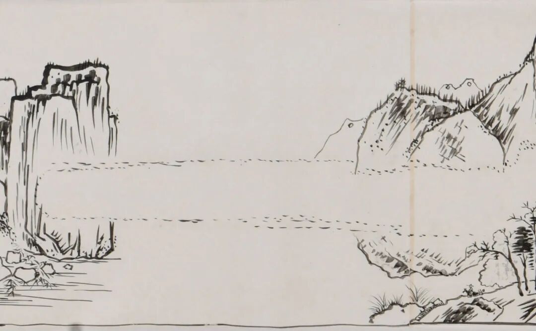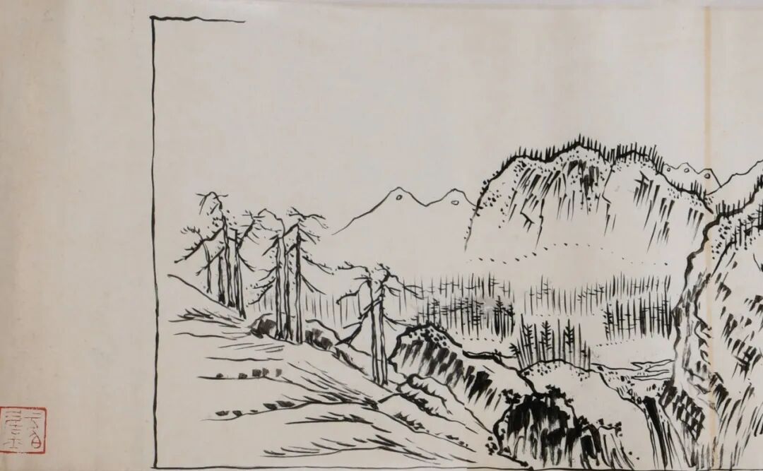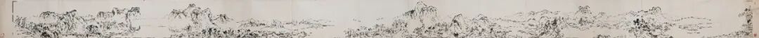 说明:元人山水卷原为溥心畬先生旧藏,原作包首有宝熙题『宋北宗山水名迹卷,绢本稀有,心畬宝藏,宝熙观并题记』;卷尾有萧方骏一九三四年观款;内有安岐、乾隆帝、诒晋斋藏印,后归恭亲王奕欣,一九三五年心畬先生将此卷售与时任美国堪萨斯纳尔逊美术馆馆长席克门,今藏该馆。王孙山水得于此,恭王府家中堂屋里迎面大方桌两旁挂两个扁长四面绢心宫灯,西边四面是节临此卷。一九三四年春,启功先生向王孙问艺,于此卷虽久存渴望,但不敢启齿借临;后启功先生得清素主人选订《云林一家集》一册,呈心畬先生,并求以假得原卷,后四十日成二卷。启功先生用薄纸勾勒粉本;临两卷一纸一绢,绢本呈援庵先生,后归援庵弟,云在广州;一纸先生自存;时先生友朋多借临本勾摹,其稿遂传于世焉。启功先生一九四二年在《三六九画报》上发表“记宋人山水卷”;一九九九年十二月十三日至十七日在纳尔逊美术馆再观此卷,以为此卷出于金源或元明高手,是南宋一派,略有北宗习气,非马远、夏珪一路,又不同于吴伟、张路之风。