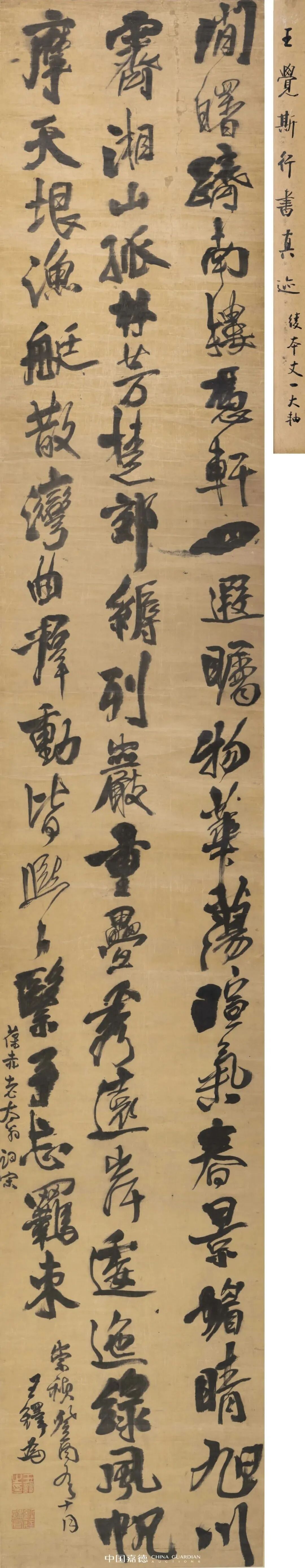 说明:是件杨继震题签。此作用笔萧散飘逸,观者有“天下第一查二瞻”之说。启功先生以复制件悬于书斋,真本护持,以防损伤。