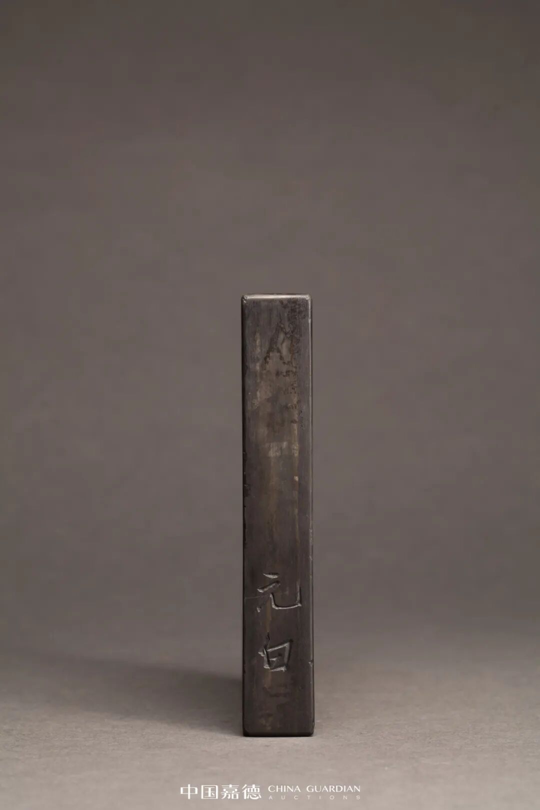 端砚正方形,形制规整,石料厚实,色泽玄青,砚堂光素,仅砚额凿祥云纹墨池,平添灵动之韵。砚背隶书《乙瑛碑》,字口深峻,书体方整,结构严谨,笔势刚健,颇得原碑文之风骨。砚侧行书边款“元白”。《乙瑛碑》碑文记述,东汉鲁相乙瑛上书请求为孔庙设置百石卒史一人来执掌礼器庙祀之事,属于纪事性的祠庙碑,与《礼器碑》《史晨碑》合称“孔庙三碑”。Lot10301