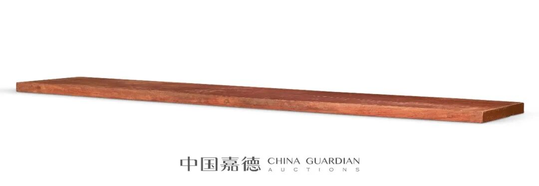 黄花梨独板,料实厚重,呈规整长方形,木色沉稳,清雅光素,独板一端起山水纹,颇有磅礴之气韵。Lot 10201
