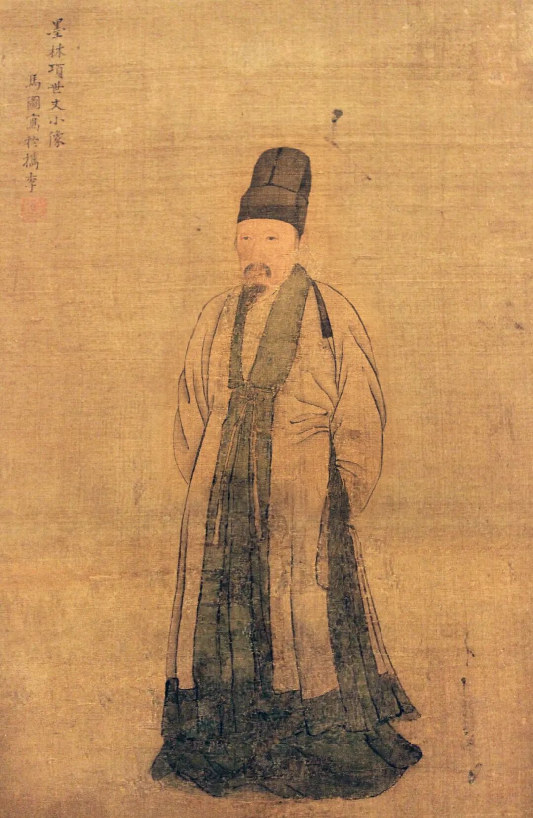 兹岂堕窳寰区、营营屑屑、乾没陶顿之流欤?某盖侍先生数十余年而有以窥先生之深矣!天籁显是源自庄子。另有认为得名其所蓄天籁古琴,今古琴存故宫博物馆,则是不识天籁的附会之论了。天籁阁庞大的收藏,于今而言,堪可成为一流博物馆,故当时名流无不向往,董其昌在内的后来者,亦无不受其浸润。《嘉禾徵献录》载:“海内风雅之士,取道嘉禾,必访元汴,而登其所谓天籁阁者。”清初朱彝尊《曝书亭集》载其于项元汴画卷的跋文:“予家与项氏为世家婚姻,所谓天籁阁者,少日屡登焉”。传世者见有小孤山馆旧藏黄花梨刻诗文罗锅枨小书案,面刻朱彝尊诗文,亦不知与朱彝尊在天籁阁所见是否有关,仰或是嘉兴一带有款刻家具的风气。项元汴不但与古董圈、艺术圈交游,且注意网罗名匠,据上海图书馆藏《嘉禾项氏宗谱》记,项元汴“又精心计,尝计选匠授意造器具,凡几、榻、架、柜、奁盒之属,镌以铭款,皆智巧绝伦。”这是项元汴督匠制器且铭刻的直接记载。《蕉窗小牍》云:严望云,浙中巧匠,善攻木,有般尔之能,项墨林最赏重之。望云为天籁阁制诸器,如香几小盒等,至今流传,作什袭古玩。又某书记望云为墨林所作竹根杯,如荷叶式。附以霜螯蓬房,巧而雅。墨林题一绝云:截得青琅玕,制成碧筒杯。霜螯正肥美,家酿醉新醅。款署万历辰秋日,墨林山人。别有小印曰望云,严或作阎。文中所述严望云所制荷叶式竹根杯,现藏故宫博物院,上有题刻,与文中描述无二(唯实物款署为“万历庚辰秋日”,《骨董琐记》并未提及)。而本文所记墨林香几,也极有可能是严望云所制。此外,还有制铜高手张明岐、擅修古琴破砚古鼎彝的蒋汝成等,均是天籁阁堂中之客,在晚明消费文化飞速发展之时,这些名匠制作的作品已被视作“古董”(刻“墨林秘藏”“项子京家珍藏”的墨林香几亦是此待遇),其人则与“缙绅先生列作抗礼”。倘若有更多的资料,不排除项元汴除了几件孑遗的家具外,还另可在明代家具史上大书一笔。项元汴所处时代,正是黄花梨、紫檀等珍贵细木开始用于制作明式家具的时期。范濂《云间据目抄》记莫是龙与顾宋两公子从吴门购入细木家具,引一时之先。上海明朱守城墓出土十数件紫檀、黄花梨文房器具,皆显示了极为高超、成熟的制作水平。明潘允端墓、王锡爵墓出土木质家具模型品类齐备,比例、造型上佳,晚明风华尽现。1975年,嘉兴市西南18公里旧称“项坟”处发掘项元汴及其家族墓,出土木器模型数件,有长桌、脚踏、灯挂椅、盆架之类,比例得体,造型优美,又可窥几分天籁阁余韵。清顺治乙酉,天籁阁毁于火,据传其藏品被千夫长汪六水所劫掠,散失殆尽。今嘉兴市尚存天籁里,据说即天籁阁旧址所在。屉板小案(偶见小桌),是在小条案的腿上部增设连接腿足的横枨,镶装屉板,形成案面下又有隔层的效果。一般所见屉板做法,是以两横两纵的四个枨子交于腿足,镶板而成,如此例纵横相交而横枨收窄者,暂无他例,非常特殊。放眼整个明式家具体系,亦是少见,但可举攻玉山房旧藏黄花梨镶大理石砚屏为例,其底座即作“l=l”字形,收窄后镶嵌石板,而且枨子亦起有委角线,与此例香几制作手法相近,或许有一定渊源。带屉板小条案多以黄花梨制成,其次有紫檀、铁梨木、鸂鶒木、榉木制者,制式皆大同小异,或为刀牙板,或为卷云牙板,多见于江南地区。偶见长过1米者,多数长和高均不过80厘米,比普通的桌子要小,存世量来看,远少于一般的小条案,是较为罕见的明式家具门类。这种屉板小案的功能不详,有言江南地区为小童作书桌之用,又有言为祭祀之香案,但均无确凿答案,从其造型和尺度来看,香案、书桌皆无不可,也有可能是随意摆设之边几,因有屉板可搁置更多物品,是厅堂、书斋甚便使用者。但屉板之设,其起初的目的应还是案面焚香时,屉板盛放盘盒等杂物,用途分明。从家具史来看,高型几案的发展,自晚唐五代以来,逐渐丰富,这种屉板小案或小几的雏形,可见于宋徽宗《听琴图》(故宫博物院藏)、传周文距《南唐文会图》(故宫博物院)等。更具体的形象,见于宋佚名《焚香祝圣图》(台北故宫博物院藏),高台上一老者焚香祷告,香几造型、尺寸、比例与墨林香几相近,屉板上则设香炉或杂物。而佚名《群仙高会图》(弗利尔美术馆藏)中香几的屉板上亦盛放着物品。宋 李氏《焚香祝圣图》中的香几(台北故宫博物院藏)明清之际思想家船山先生王夫之,有一张乌木镶大理香几,有赞文载于《姜斋诗文集》:“明窗棐几,香缕萦空。终远腥熏,愿承下风。太元为守,介石为心。君子去我,夜气惟金。”名之为“罏几”,因其“大理石为中,乌木为边,似案而小,以承罏、香、匙瓶”。就其所述,与墨林香几相差无几。除了收藏的字画外,项元汴相关的砚台、文玩,均有传世。家具则知唯有三件(套):其一为墨林棐几,为一件黄花梨红漆面十字枨小画桌,清嘉庆时为张廷济所得,录入《清仪阁所藏古器物文》,高78厘米,宽68.5厘米,长102.5厘米。桌面两抹头中间刻印,“项”与“墨林主人”在右,“项元汴字子京”在左,腿足上有张廷济堂兄张燕昌补刻文字。2016年曾于上海龙美术馆展出,为无锡收藏家所藏。与之配套者有相同造型的硬屉长方凳一对,短边上亦刻“项”“墨林主人”,曾经嘉木堂过手。![]()