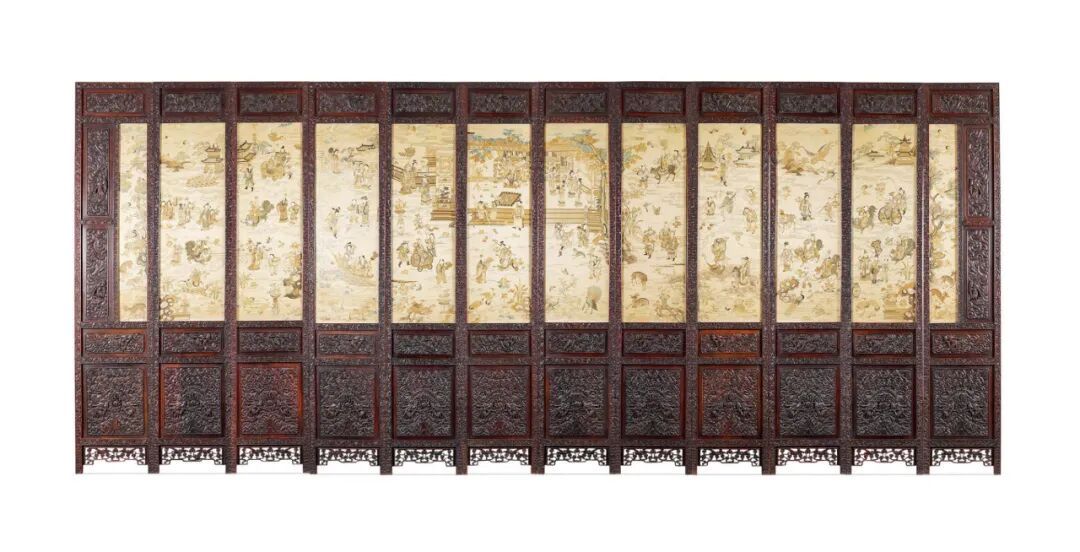 清中期 红木雕云龙框盘金粤绣群仙祝寿图十二扇屏风一套拍品估价:1,800,000 - 2,800,000人民币