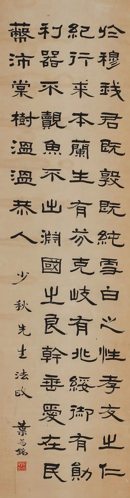 上款简介:程民楷[近代],字白石,安徽休宁人。工书,尤善篆籀。