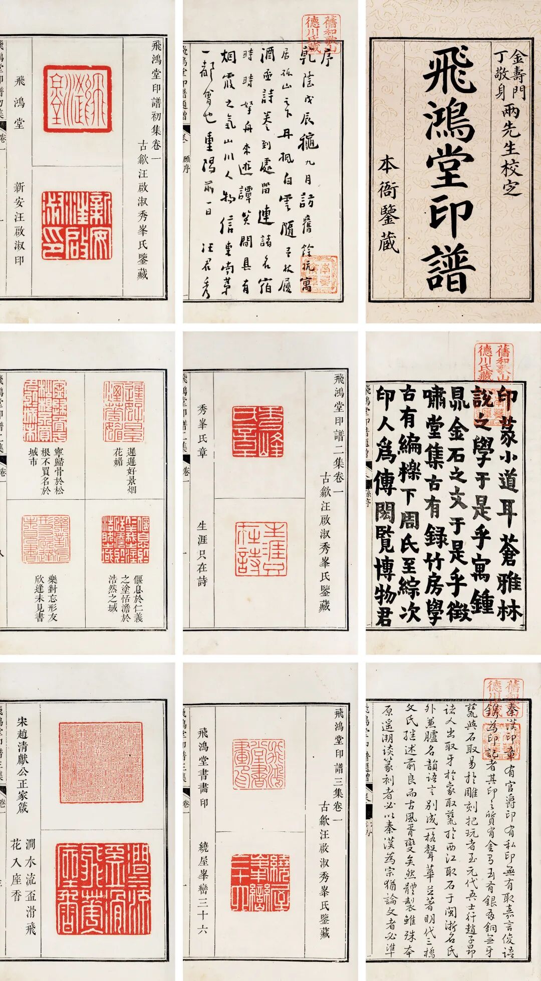 《飞鸿堂印谱》由清代藏印名家汪启淑编辑而成,汪启淑自称印癖先生,飞鸿堂是其室名,其所辑《印谱》卷帙浩繁,收录名家名作数千方,可谓印谱中得集大成之作。本次推出三集本,开化纸钤印,朱痕艳丽,纸墨精良,旧装书衣,犹存成书时之风貌。是南葵文库中劫余之物,识者自当宝之。