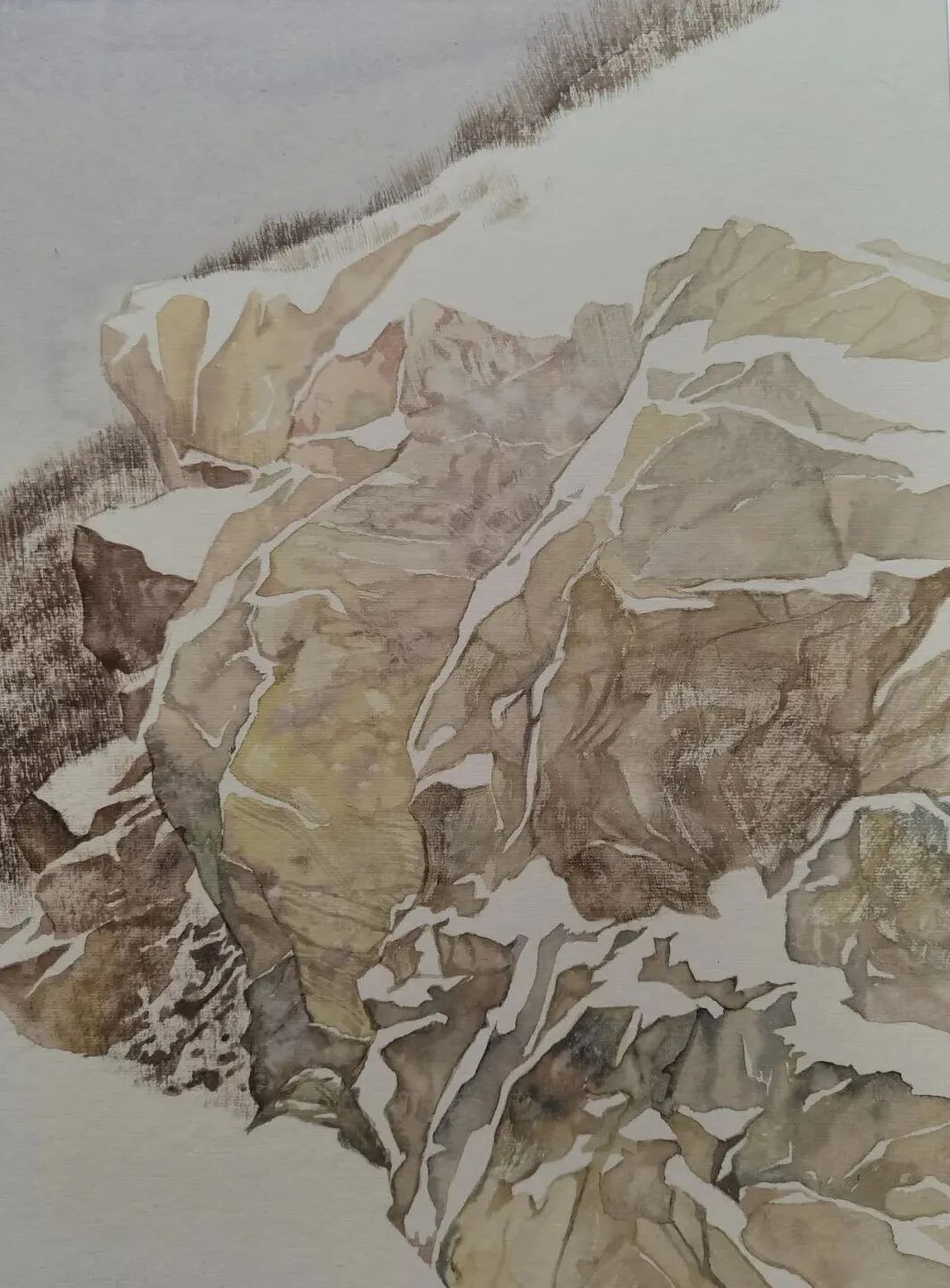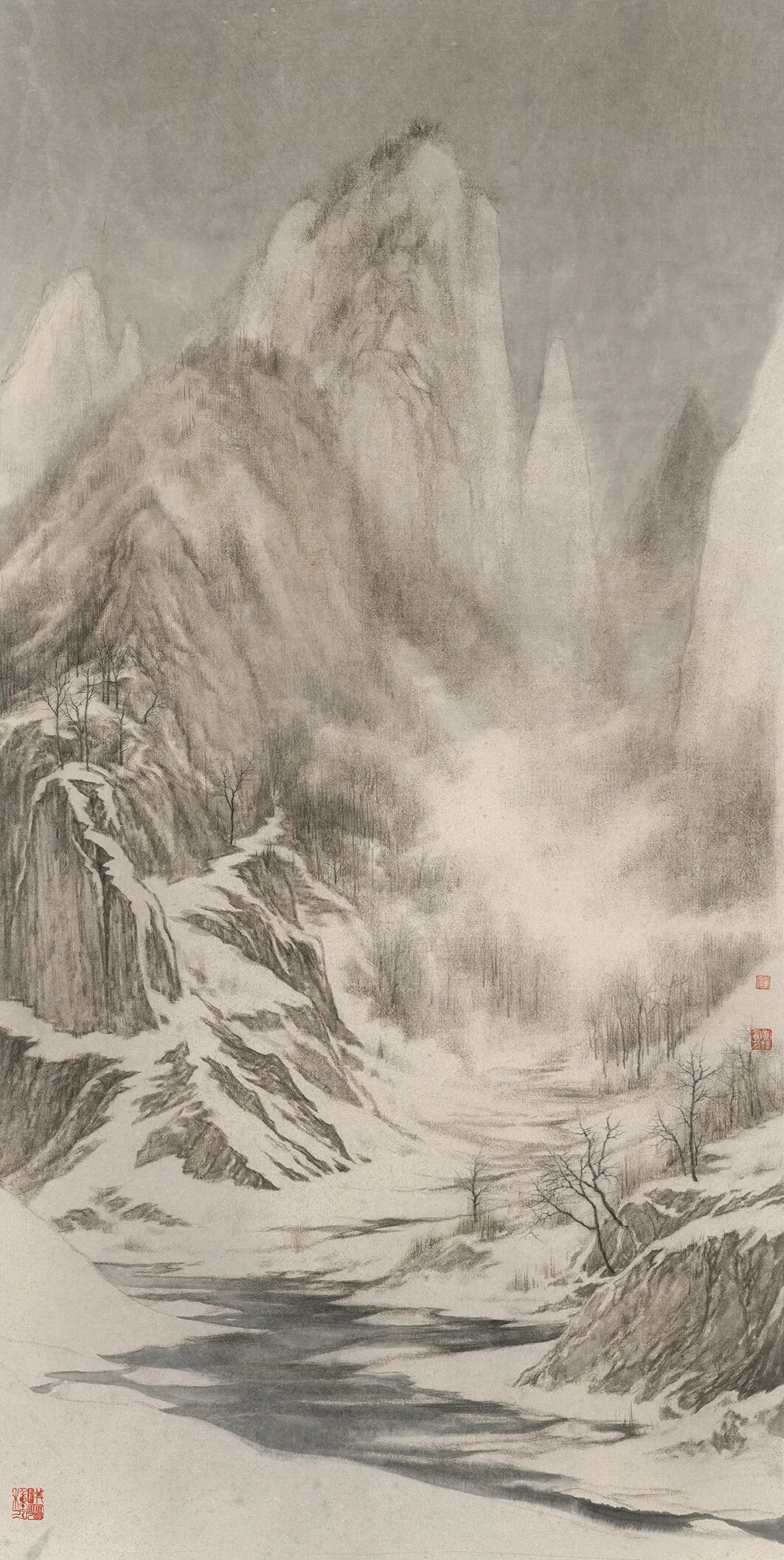 “有时候也会怀疑,自己创作的山水画从墨分五色转向色墨交融、从笔墨转向肌理,空间处理也加入山水画中以外的元素,这样形成的格局,与我内心向往的宋人山水产生的视觉冲击是有区别的,我希望找到契合的突破点,让自己画出来的雪景山水,实现二者的融合,即精神上找回宋人对走近自然的神性,表达上又带有语言的当代性、视觉的场域性,当然这也许是一个项微不足道的创新,却举步维艰。”