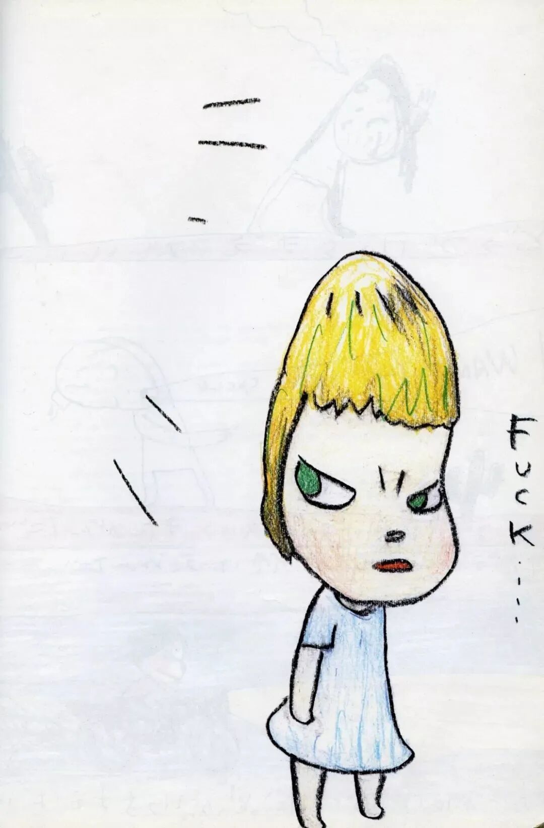 奈良美智喜欢看漫画,每次哥哥带回来的漫画书,都看得如痴如醉。但他并没有临摹,而是把自己关在房间里,用铅笔画「空想画」。在别人眼里,他是个沉默寡言的怪小孩,其实内心世界充满奇思妙想,他说不出来,只能通过画画来确认自己的存在。