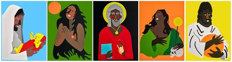 妮娜·香奈儿·阿布尼(1982年生)《暂时的朋友》,五幅彩色浮雕版画,每幅:99. 6 x 74.9 cm., 2019年作,估价:60,000 - 80,000 美元。此作即日至7月21日在佳士得Trespassing网上拍卖中呈献