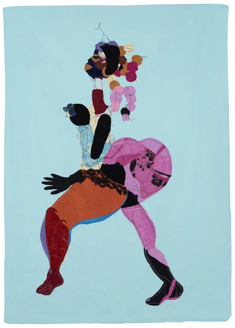 莎芭拉拉·塞尔弗(Tschabalala Self)的画作《蓝宝石》(Sapphire) 在2019年于佳士得伦敦以395,250英镑成交,刷新她当时的拍卖纪录。她的作品结合油画、版画和拼装艺术的元素,游走于平面抽象画及雕塑之间。《蓝宝石》以多块涂色绗缝布料组成黑人女性的形象,反映塞尔弗希望了解观赏者如何诠释这幅具像作品的意像。![]()
