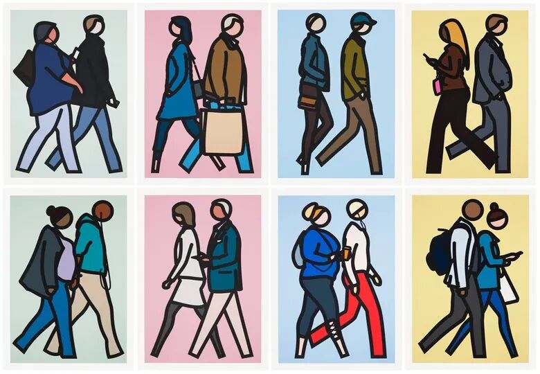 朱利安·奥培(1958年生)《纽约情侣1-8》,一套八幅,丝网印刷喷墨拼贴,每幅画作:111.7 x 77.4 cm.;每张纸:122.5 x 88.5 cm., 2019年作, 估价:100,000 - 150,000美元。此作即日至7月19日于佳士得当代版画网上拍卖中呈献