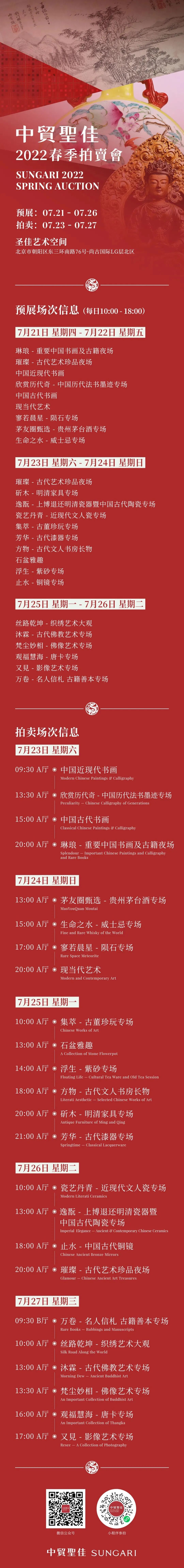经过精心的策划,24大专场、3000余件拍品将在为期6天的预展中分批亮相。而井井有条、重点明晰的专场分区,对标博物馆级别的展陈水平,外加点缀其间的插花艺术,让藏家在品赏这荟萃满堂的艺术精品时,能够收获不一样的体验。还需一提的是,中贸圣佳今天也迎来了春拍开槌首日,书画板块正在火热举槌。因此,想要去现场感受气氛的朋友们千万别错过时机。