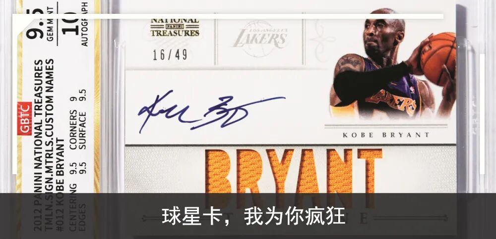 由藏卡王展示的一张2017科比·布莱恩特国宝系列Colossal Logoman球星卡,同样由帕尼尼公司出品,全球限量1张,BGS评级9分。此卡为科比·布莱恩特仅有的几款1编Logoman卡片,卡片Logoman部分为科比·布莱恩特比赛用服裁切而成,目前市场价格约为150万元。