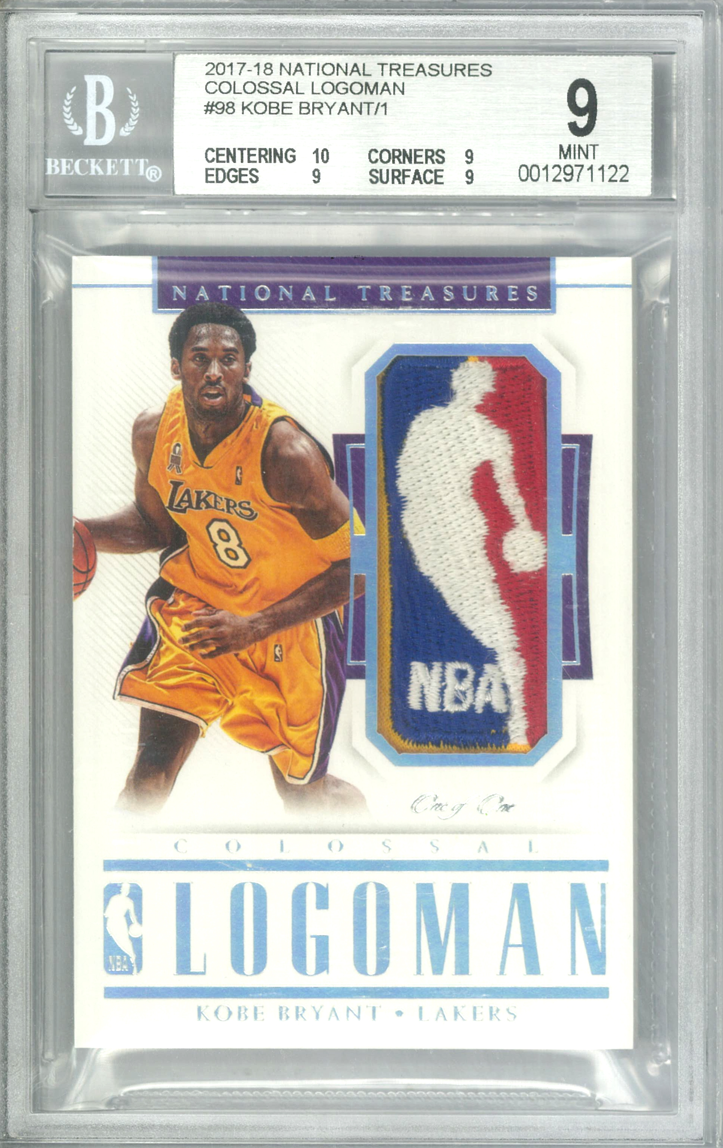 全球限量1张,BGS评级鉴定品相9分,为科比·布莱恩特仅有的几款1编Logoman卡片。
