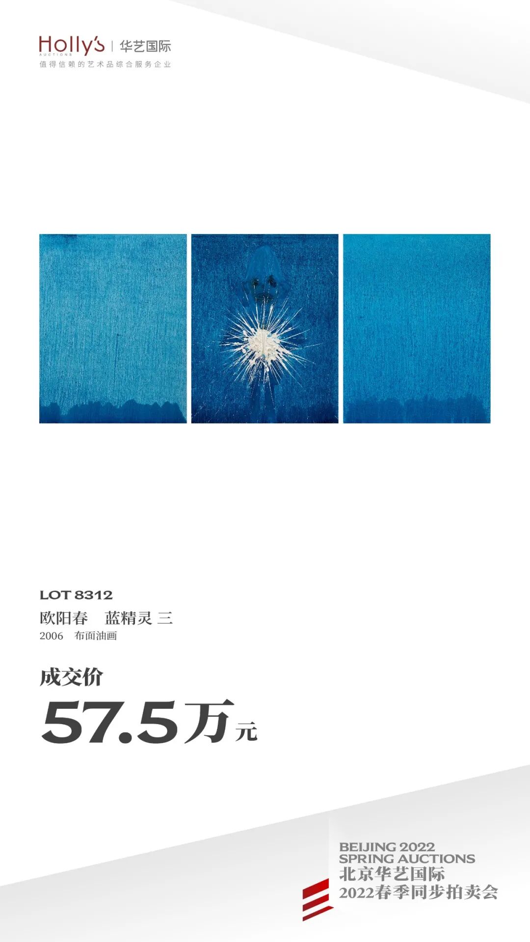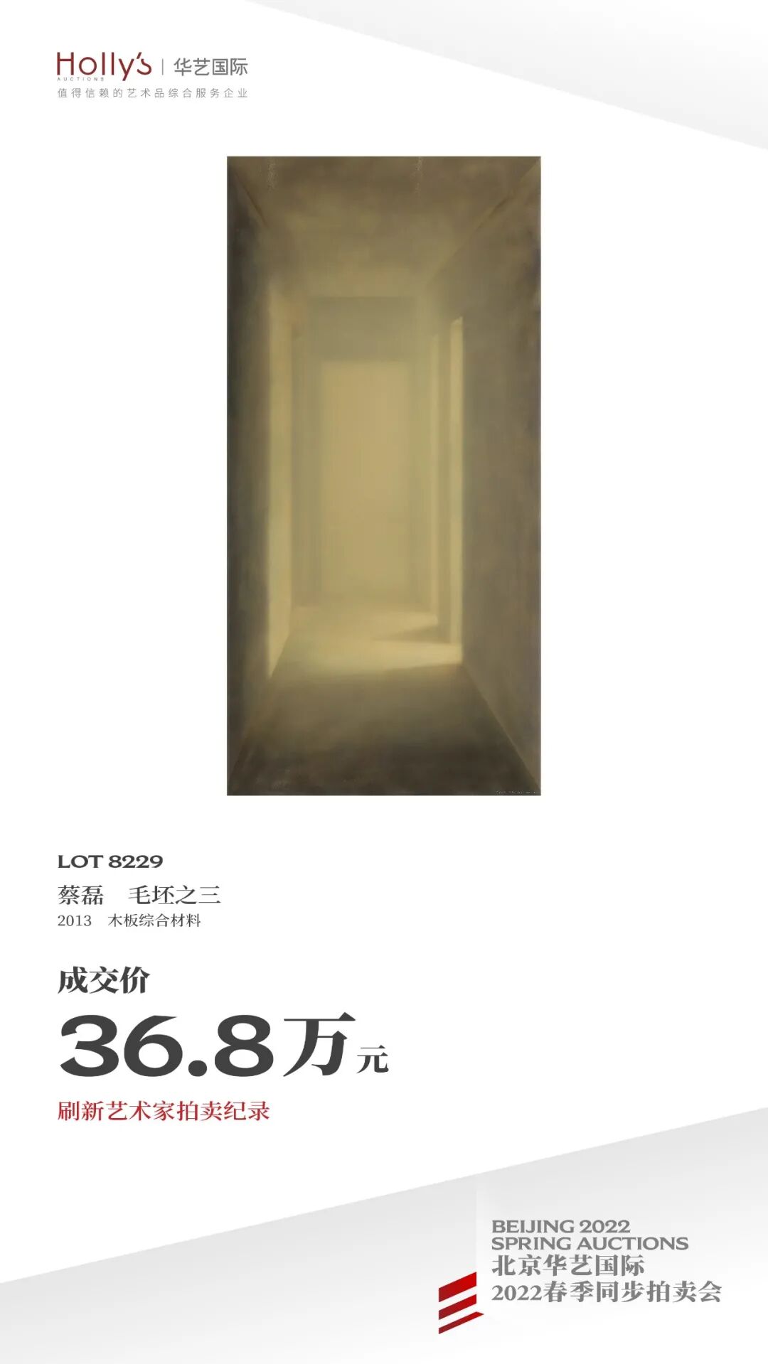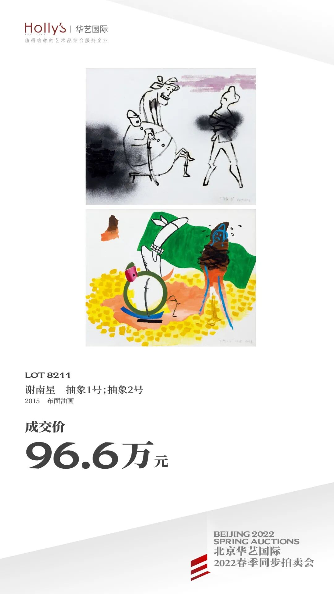 现当代艺术日场总揽1683.03万元,特色专题:“70后+ 当代艺术专场” 总成交777.29万元,成交率93.55%。囊括了谢南星、欧阳春、泰琦、江上越、赵赵等艺术家重要阶段的精彩作品,其中80后艺术家蔡磊刷新个人拍卖纪录。