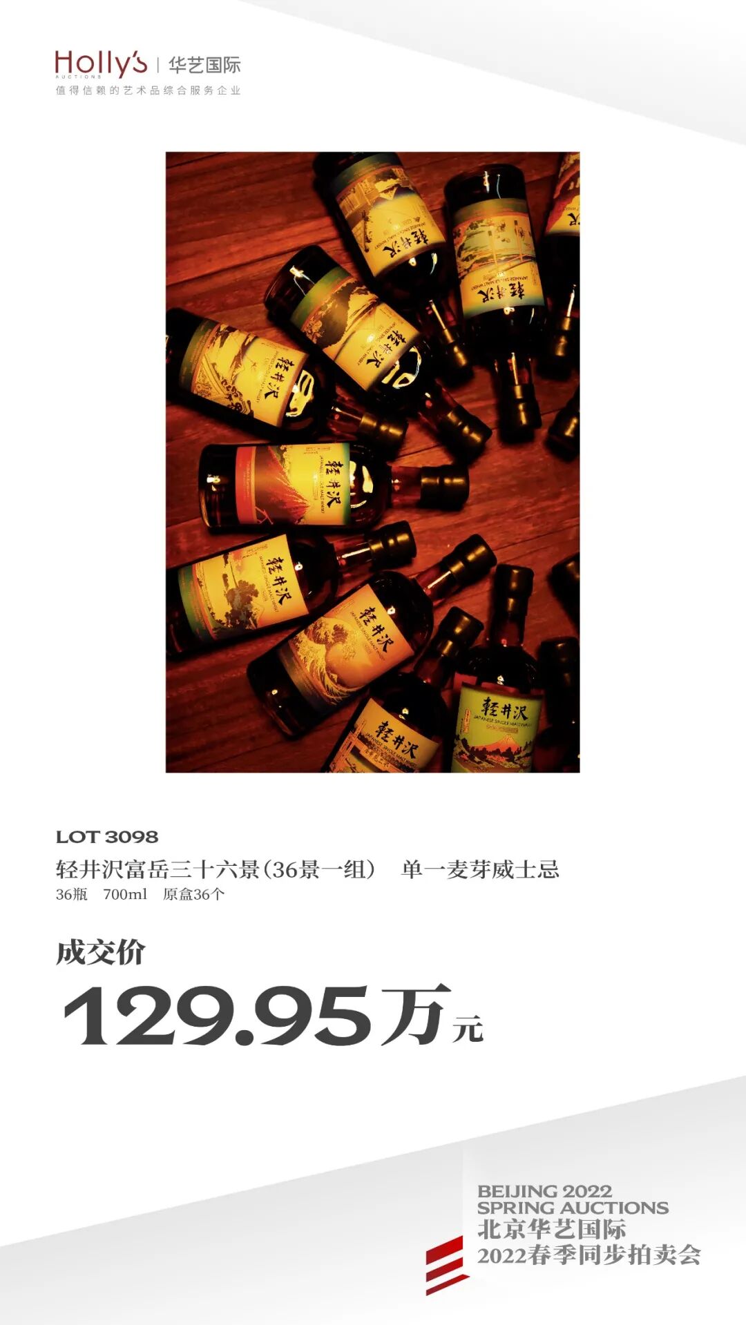 本专场汇聚实世界各地顶级名酿,其中轻井沢富岳三十六景(36景一组)以129.95万元成交;1998年勐海茶厂8582(橙中橙)拍得92万元。陈年贵州茅台酒、陈年普洱茶、养生精粹等多件拍品现场表现优异。