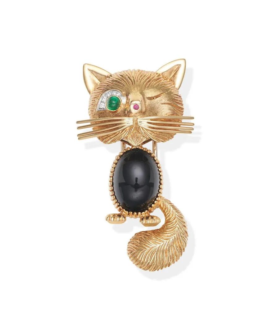 梵克雅宝|镶钻石及宝石「淘气猫」胸针