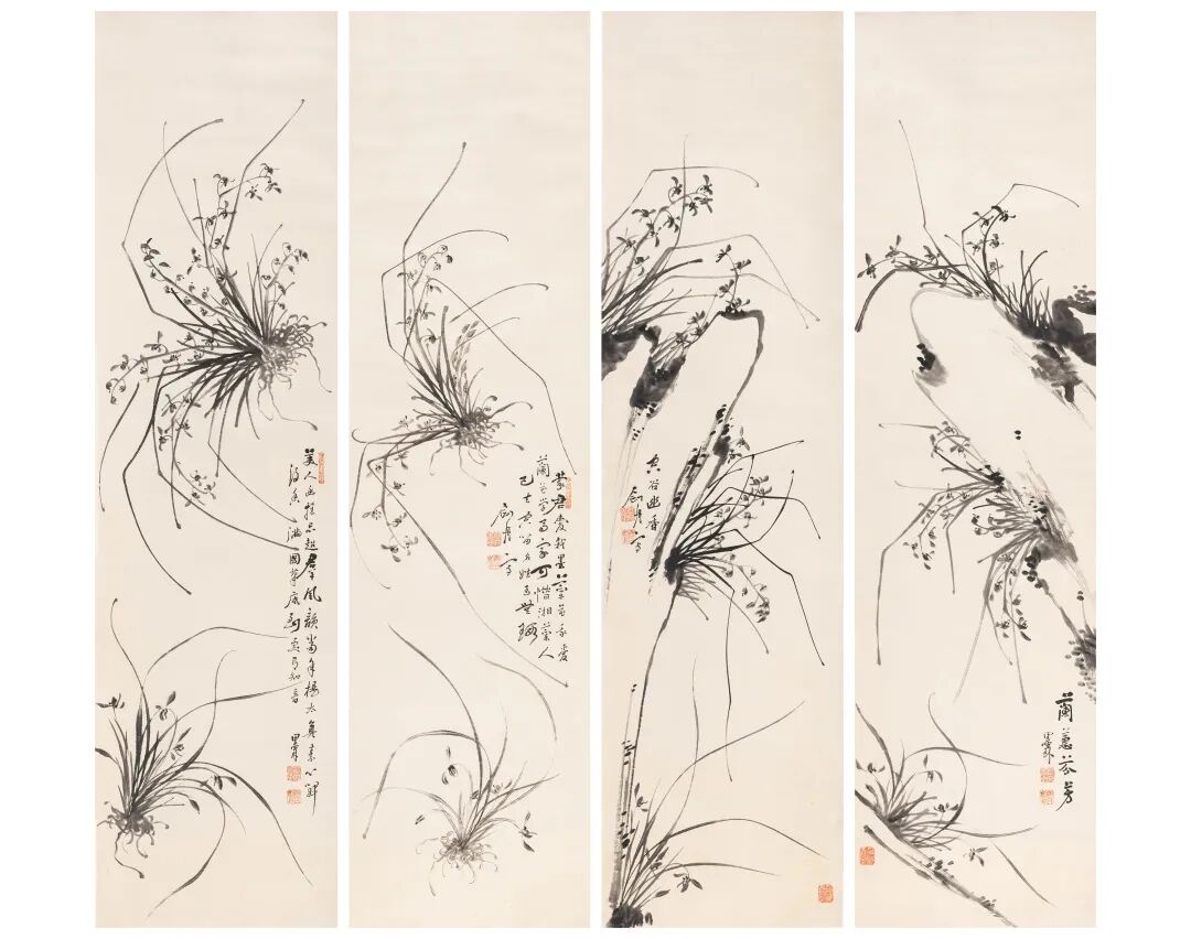 姚墨林 兰草四屏