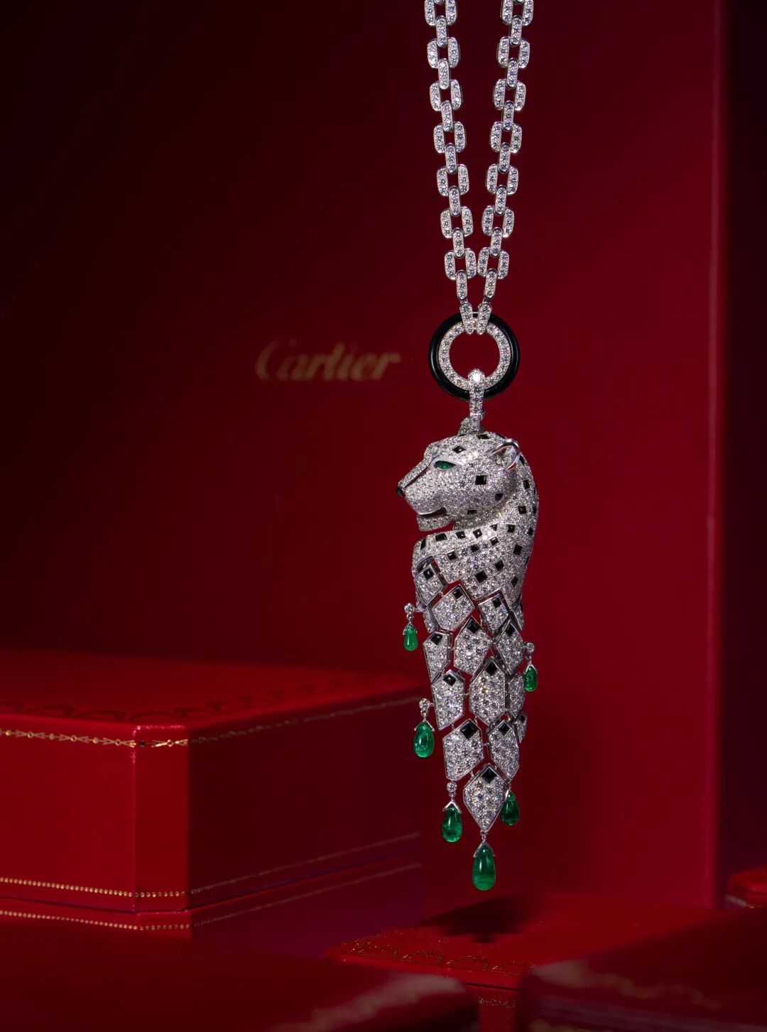 卡地亚设计,钻石配黑玛瑙及祖母绿“美洲豹”项链