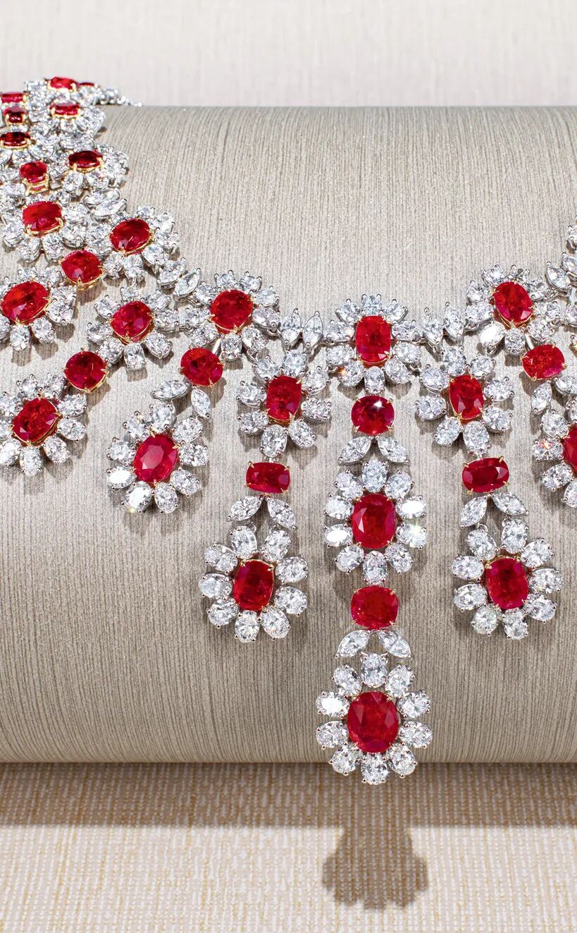 总重101.43克拉缅甸红宝石配钻石项链,未经加热