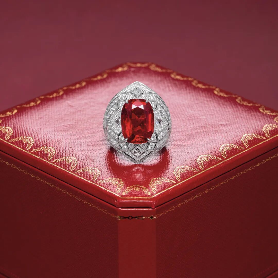 卡地亚设计 8.388克拉缅甸红宝石配钻石戒指,未经加热