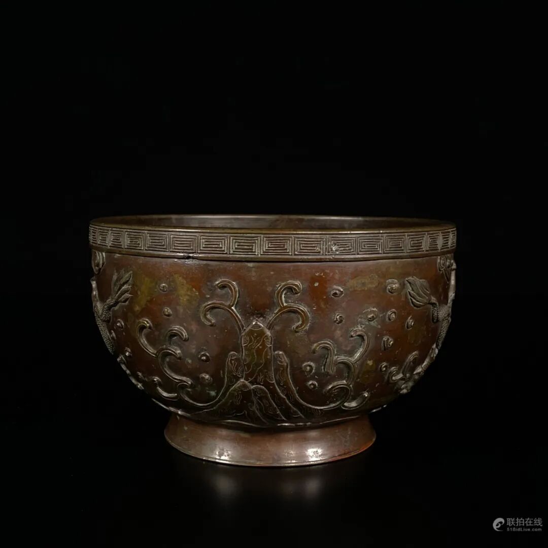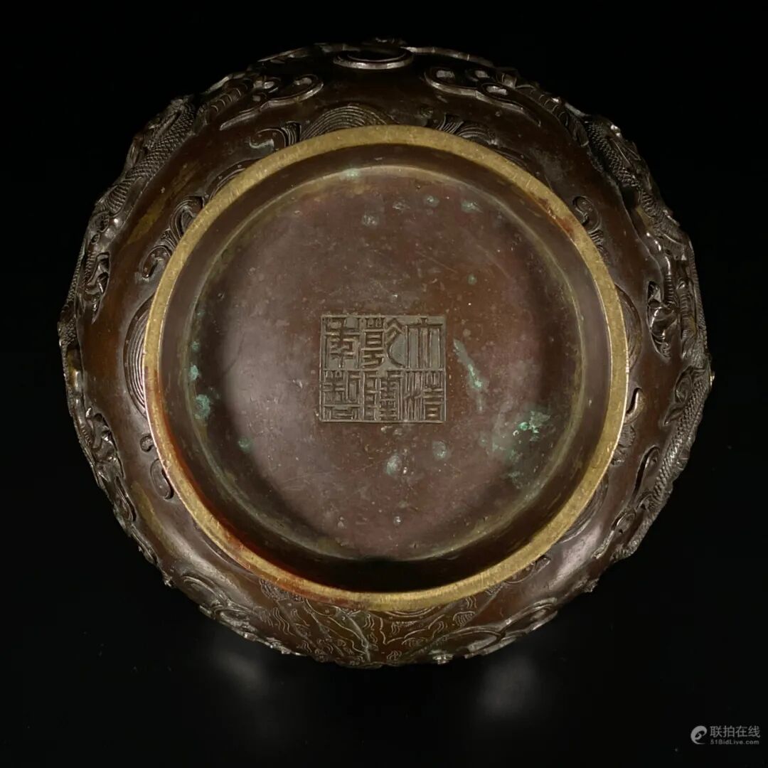拍品估价:400,000 - 800,000 日元清乾隆铜丽双龙纹碗