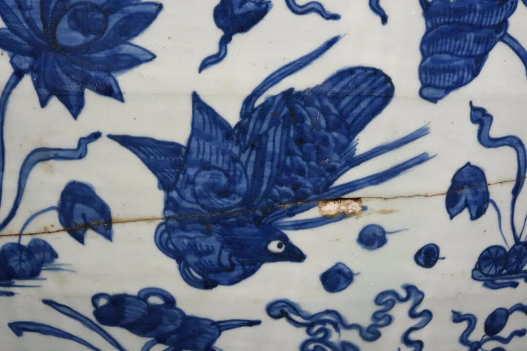 在本季呈献的宫廷御瓷中,这件大明嘉靖年制款青花大缸堪称亮点。大缸唇口深腹平底,瓷质坚硬,形制硕大,气势磅礴,造型敦厚威重,近口沿处横落「大明嘉靖年制」楷书一行款,字体古拙遒劲。缸身主题图案以荷花、鸳鸯纹为主,辅以吉祥螺、水藻纹等,为传统吉祥咏情合欢纹饰,是嘉靖官窑最具表现力的「满池娇」装饰。拍品估价:1,000,000 - 2,000,000 日元画面笔法古拙有力,运笔恣肆而不失神韵,空间布局未刻意经营而丰富饱满,所绘物象质朴自然、生机盎然。外壁通体青花纹饰,青花发色浓妍翠蓝,釉色肥厚泛青,一变明中期成化、弘治青花的淡雅,所用青料当属嘉靖前期盛行的贵重回青料。此类大器多为皇宫专以养鱼或是盛水防火之用,烧造技术繁复,制作极费工料。而本件青花荷塘鸳鸯纹大缸是嘉靖官窑中难得的经典之作,传世品如凤毛麟角,各大博物馆亦少有类藏。器型相近者如有苏格兰国家博物馆藏明嘉靖青花龙纹缸、大英博物馆藏明万历青花加黄彩云龙纹大缸等可资参考。