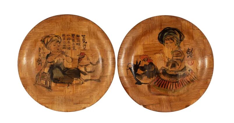 程十发(1921~2007) 人物竹盘(一对)