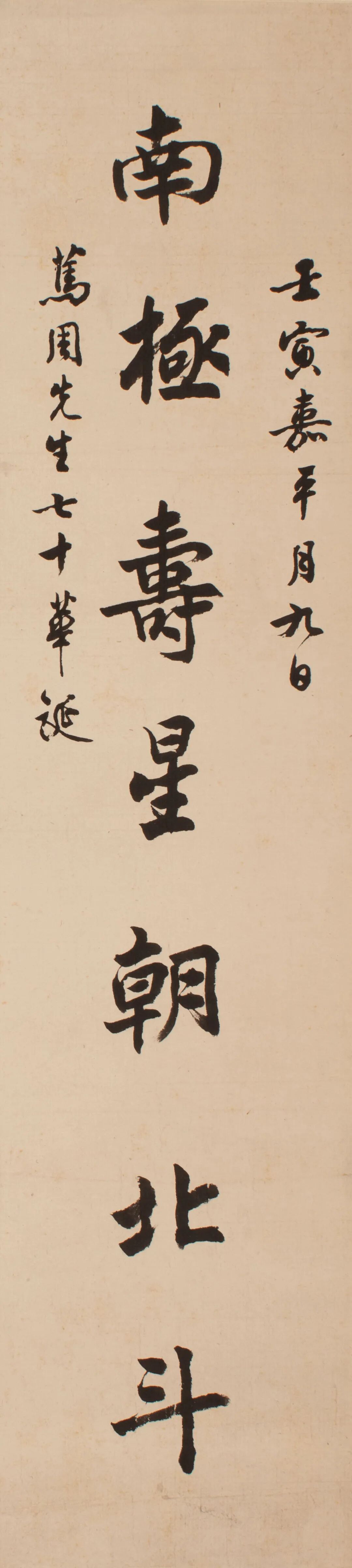题识:壬寅嘉平月九日,笃周先生七十华诞,尹石公集何大复句,沈尹默书。