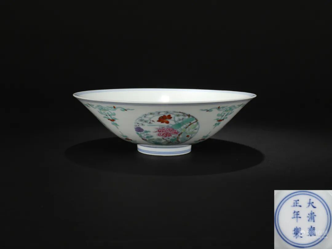 清雍正 斗彩团花蝴蝶纹斗笠碗