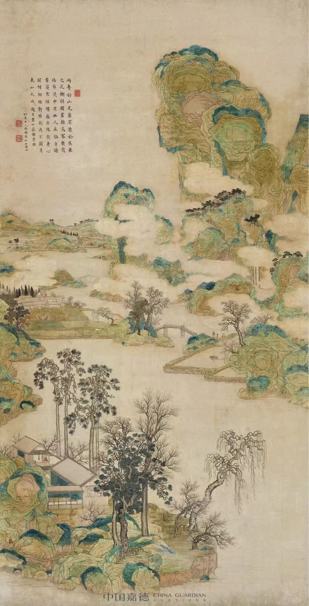 这是明末清初画家顾符稹的佳作,山色苍翠,意境清幽。顾符稹以山水画见长,其传世作品在北京故宫、南京、上海、天津等多家博物馆均有收藏。更引人注目的是这件拍品曾由国外知名藏家收藏,在国外有过多次出版著录,还曾在美、德、法等国博物馆参加过10次展览,名声在外,值得珍藏。