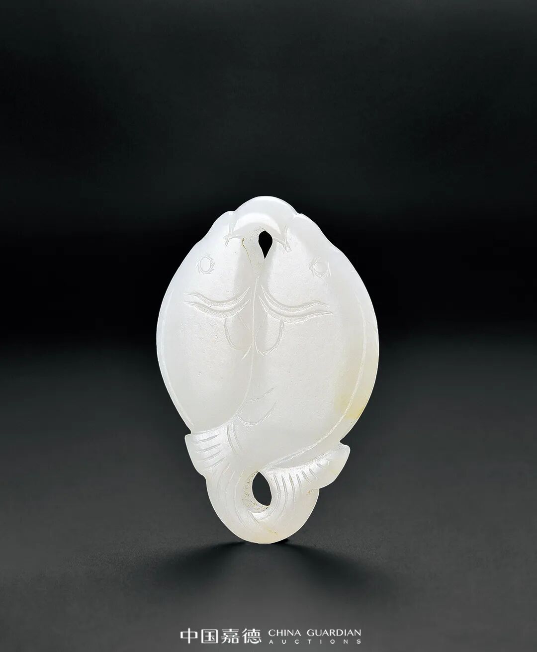 鱼作为玉器创作的题材早已有之,但是双鱼造型较为少见。这件难得一见的明代玉器珍品,简洁素雅,晶莹润泽,双鱼相交,则预示着爱情的和美。随身佩戴,有吉祥护佑之意。