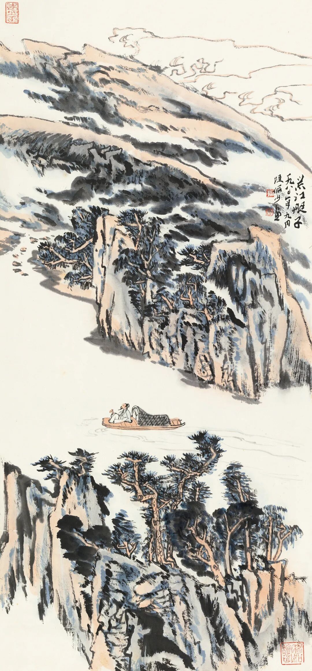 陆俨少是海上画派的重要代表人物,他的笔墨层次丰富,气韵生动,线条变化流动,意境卓绝。他在深入师法传统的基础上通过大量的写生与体验生活, 在自然的观察学习中敢于创立新法, 给传统山水画带来新的笔墨语言, 但并非拘泥于某一家某一派, 也并没有传统文人画家那种崇南抑北的思想, 继而确立了其山水画独特的艺术面目, 形成了极具个性的“陆家山水”。