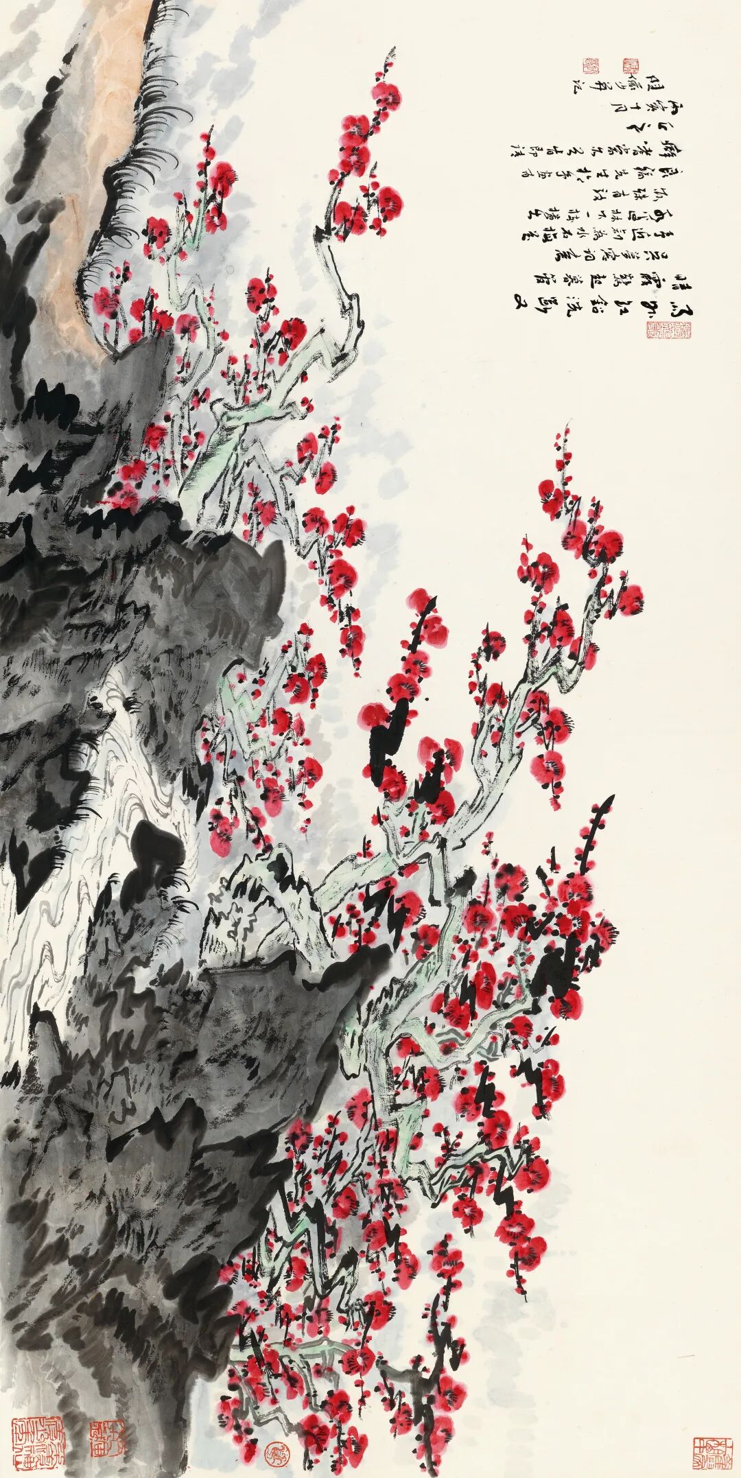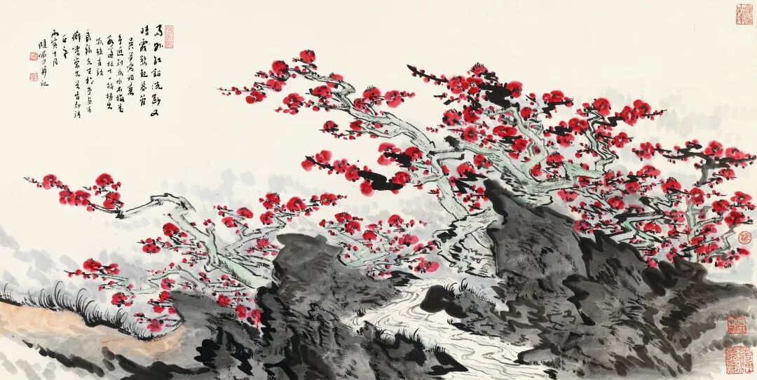 释文:雨外红铅洗断,又晴霞惊起暮管。吴梦窗词意。予近创为水石梅花。水边林下,一枝横出,亦殊有致。良福先生于予画有癖嗜,当亦首肯,即请正之。
