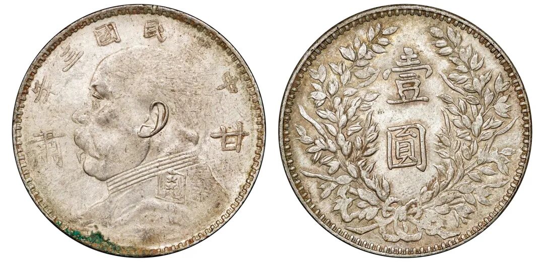 民国三年袁世凯像“甘肃”加字壹圆银币/PCGS AU53