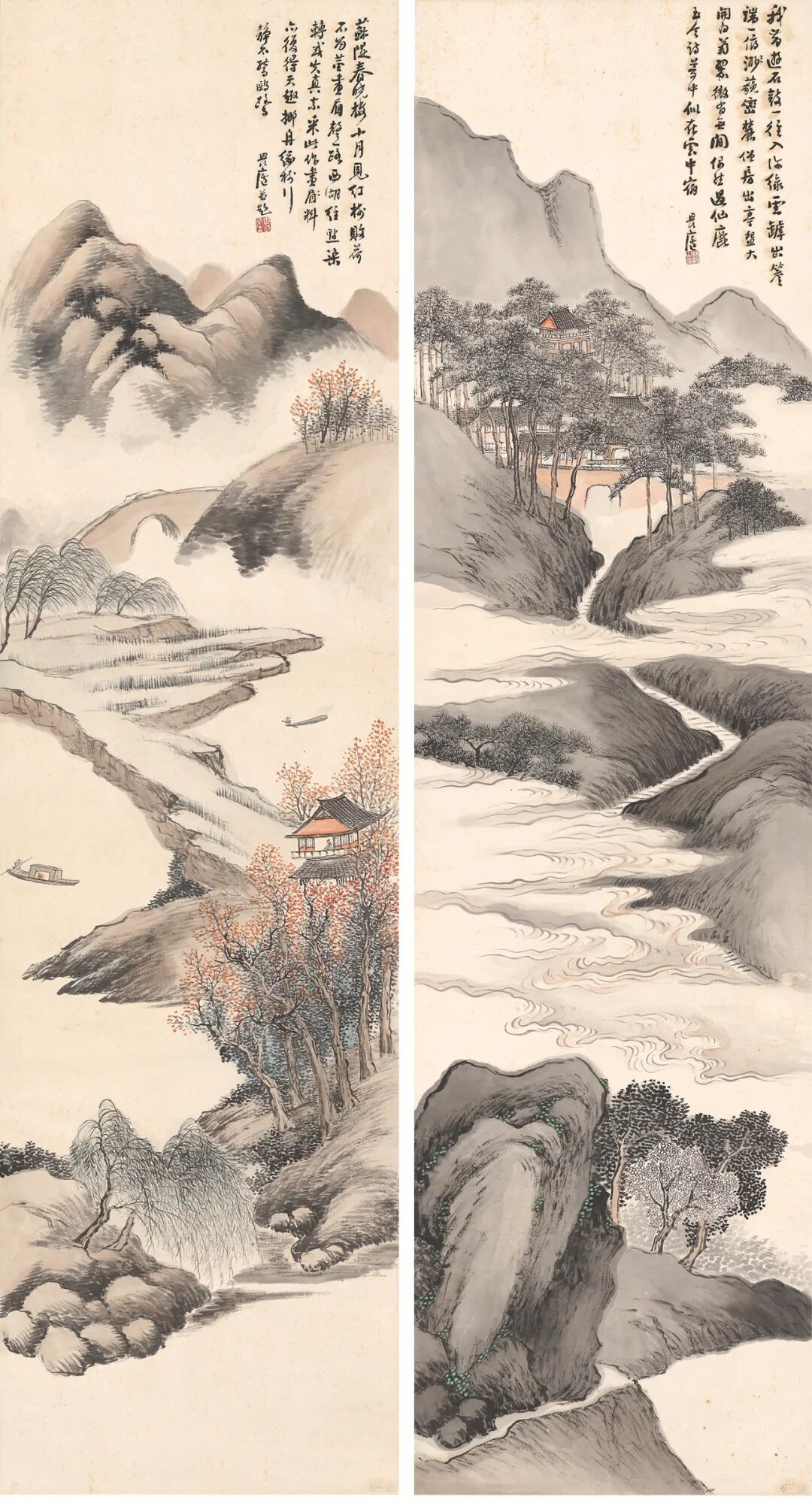 设色绢本 ·纸本立轴 ·对联