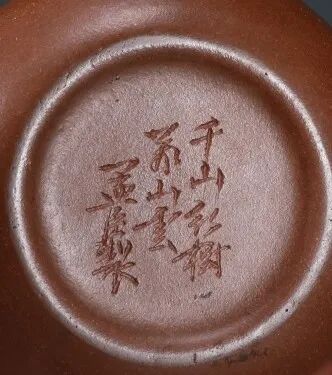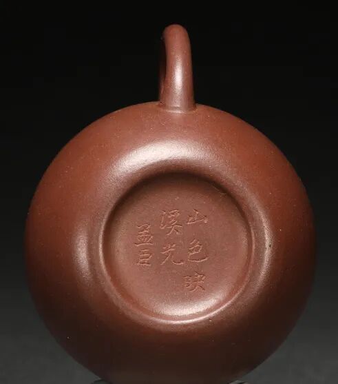 壶底写泥“山色映溪光”,字迹妍雅。观之整器,形秀雅而神俊挺,难得之佳品也。
